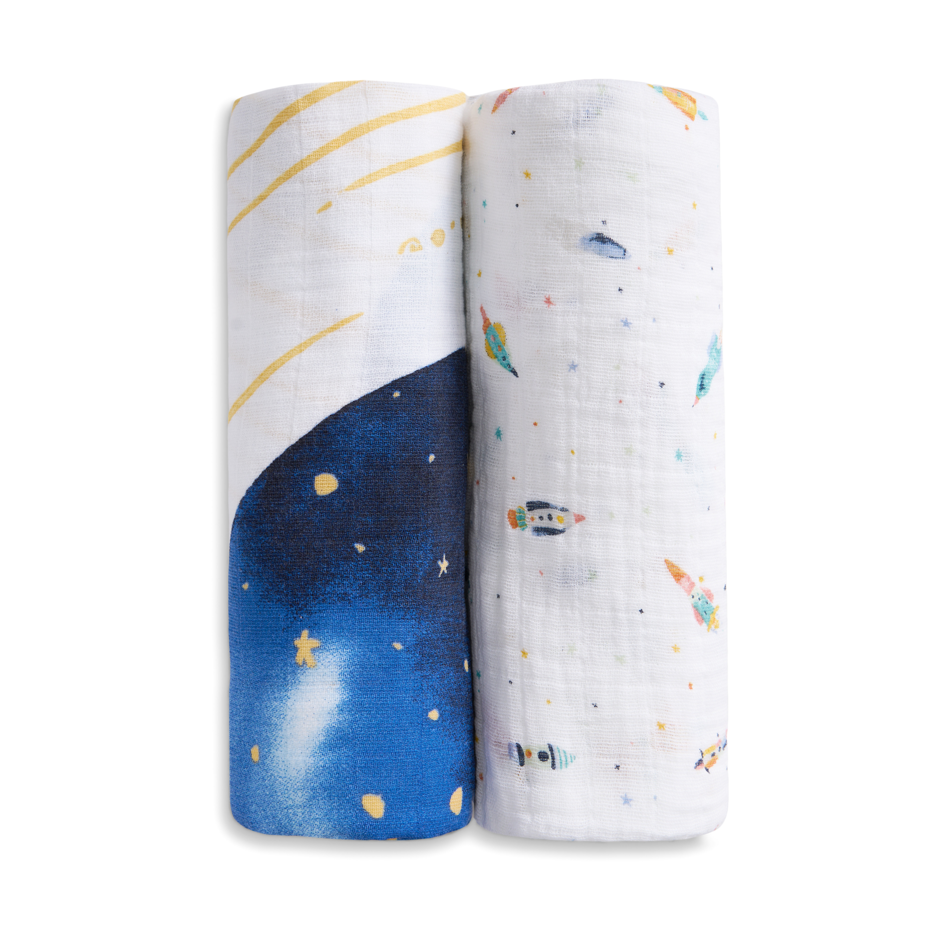 - Includes 2 swaddles
