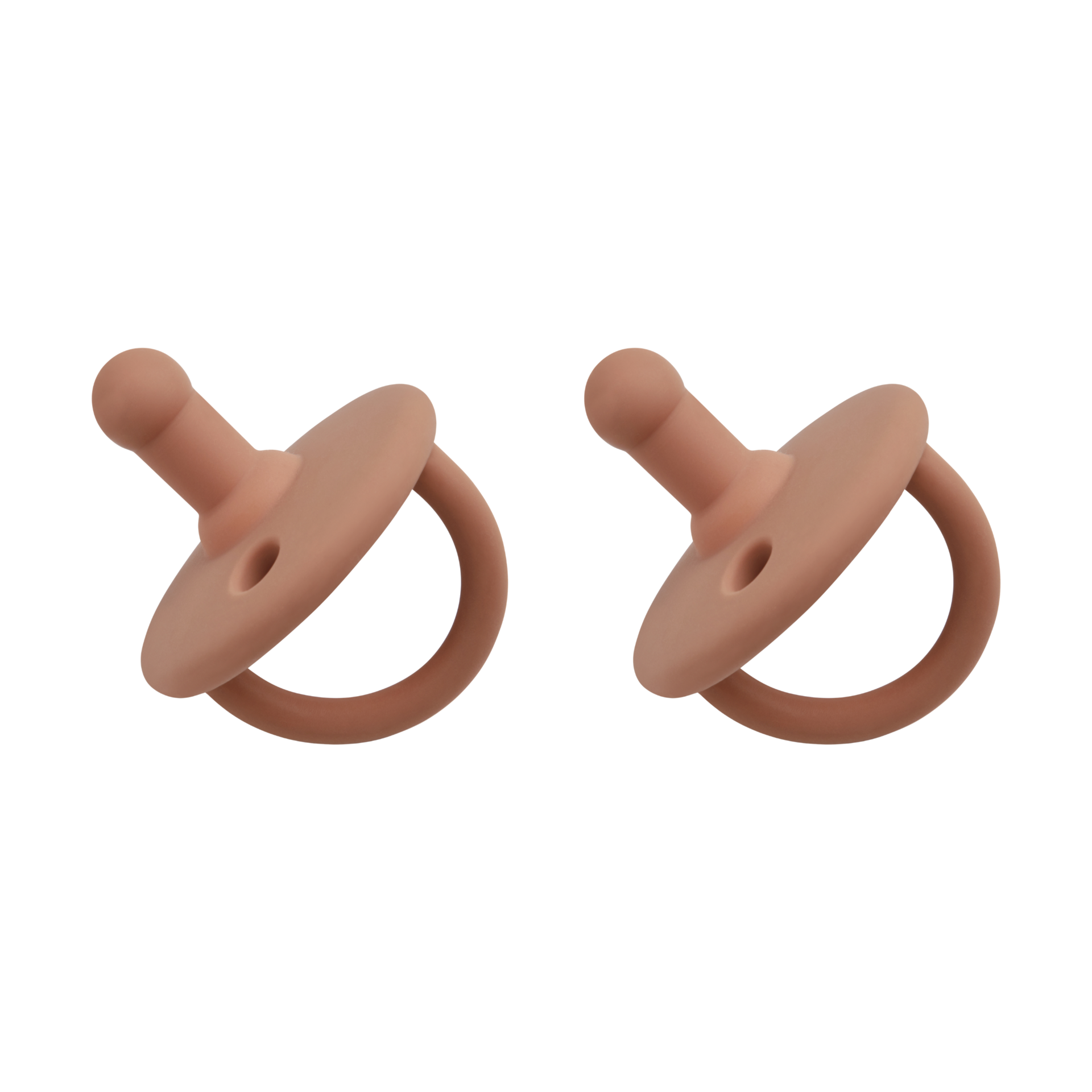 These smooth one-piece pacifiers from AEIOU are made from 100% food-grade silicone. Each one has two large vents for safety. A pack of two means you’ll always have a back-up.
