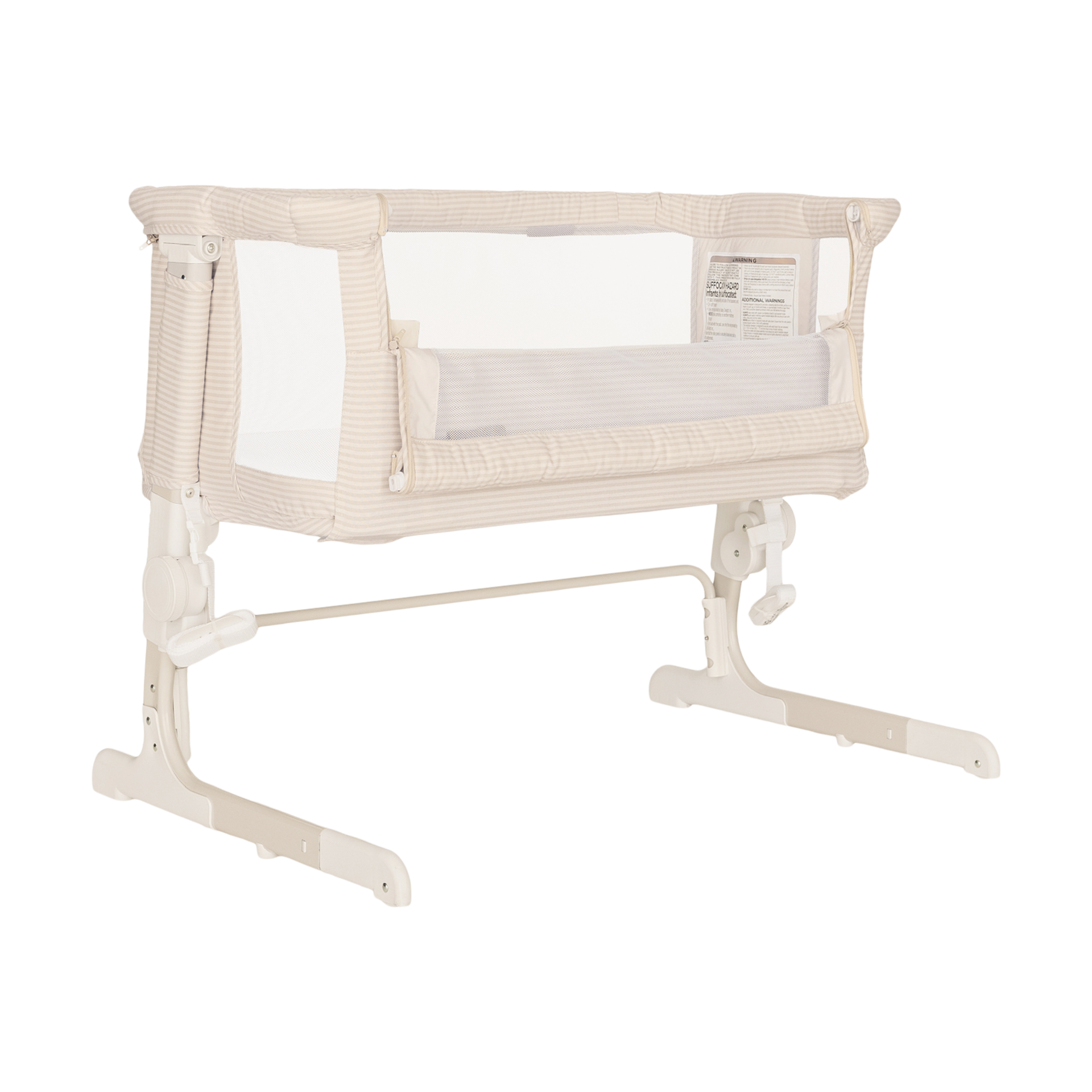 - Side panel opens for easy access to baby from bed in bedside sleeper mode