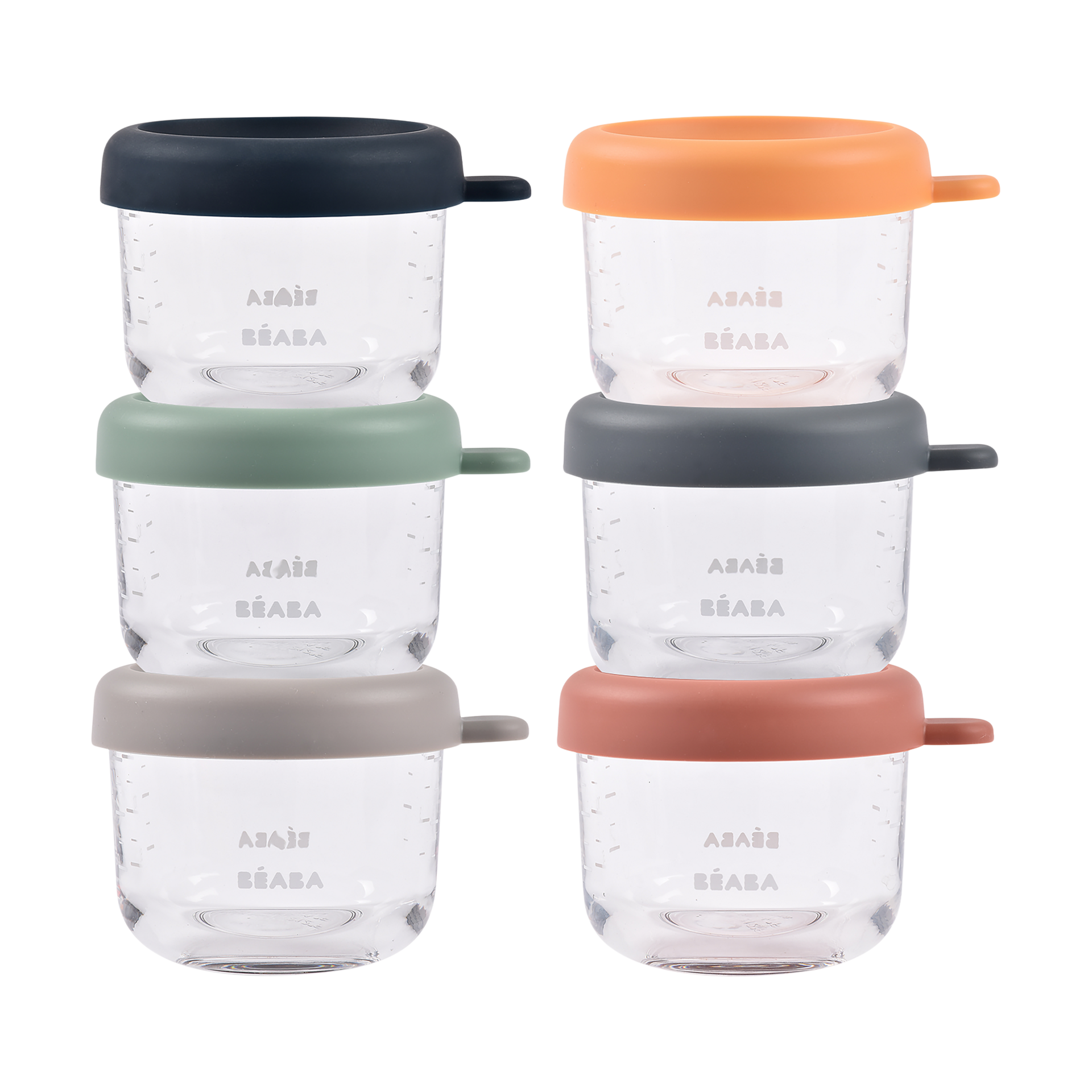 These BEABA glass baby food jars are perfect for storing homemade baby food purees, snacks, fresh fruit or veggies. The highly resistant glass is heat and thermal shock resistant, while the airtight lids are easy to attach.