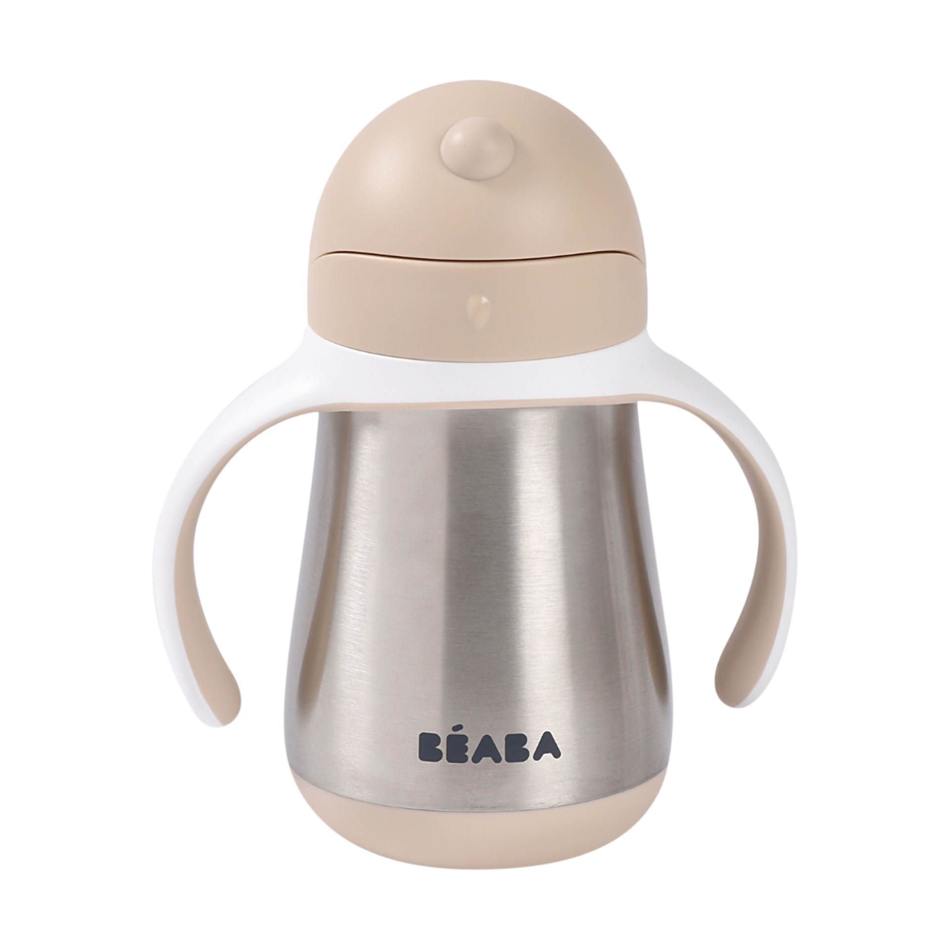Designed for around eight months, the Stainless Steel Straw Sippy Cup with a straw helps strengthen muscles that are important for eating and talking. It’s 100% watertight and leak-proof—open, closed and upside down. All spouts and straws are made from 100% supple silicone. The handles can also be removed if needed.