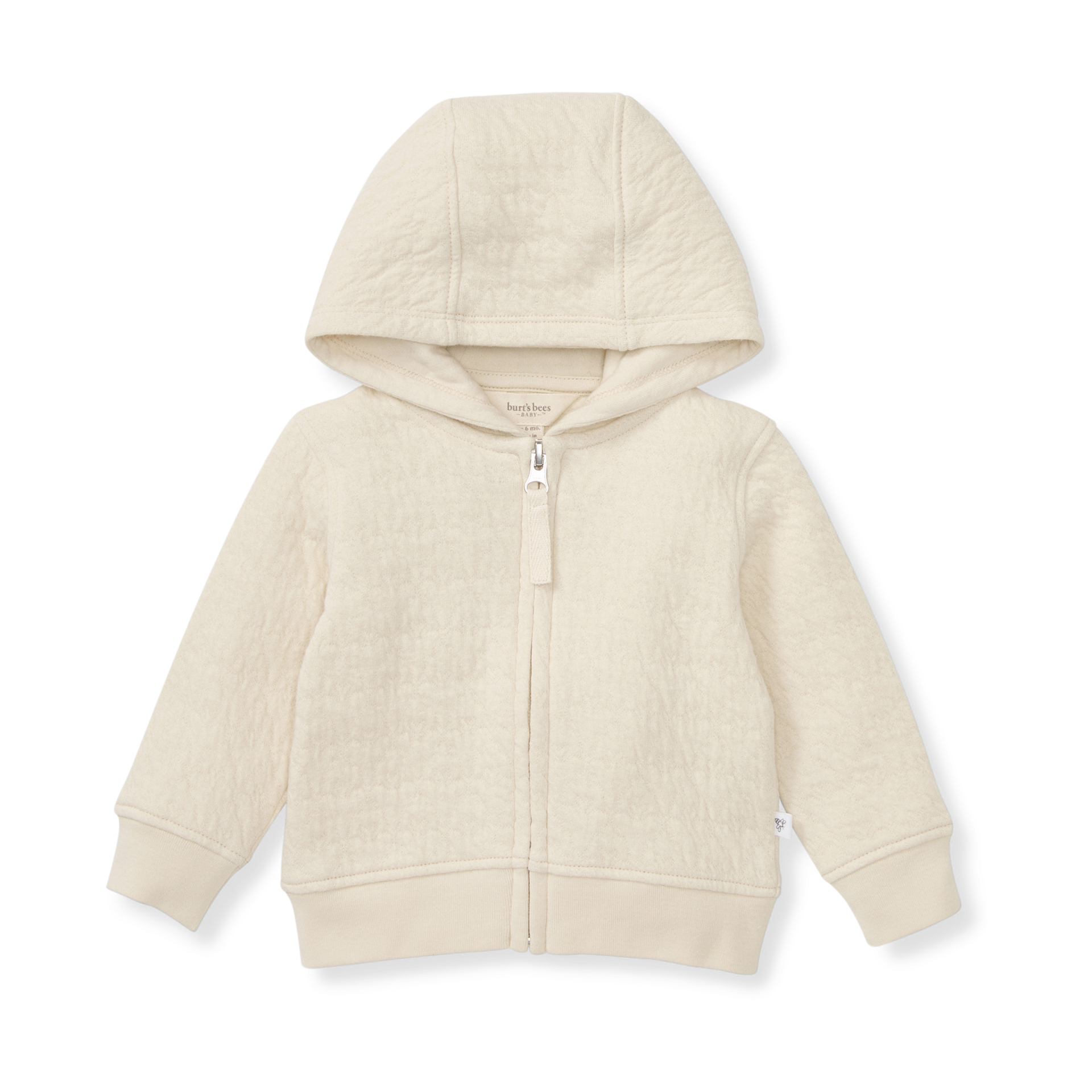 The zipper front makes for easy on and off, while the quilted fabric is soft and cozy. Plus, it has a jersey-lined hood.