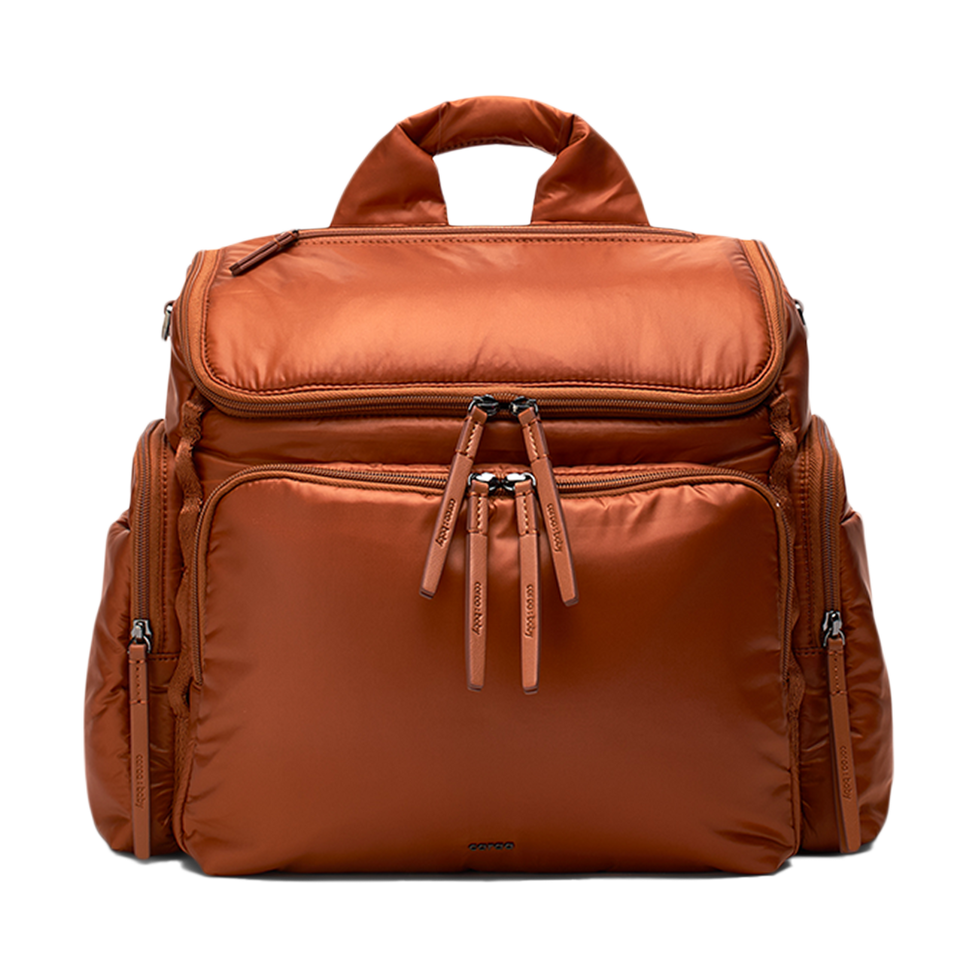 Encased in soft waterproof nylon and vegan-friendly, the Baby Bag Nylon features dedicated spots for diapers, wipes, bottles, clothing, toys and more. It also includes insulated pockets for separate hot and cold foods, a diaper caddy, magnetic pockets, mesh vents for humidity and spills and more thoughtful features.
