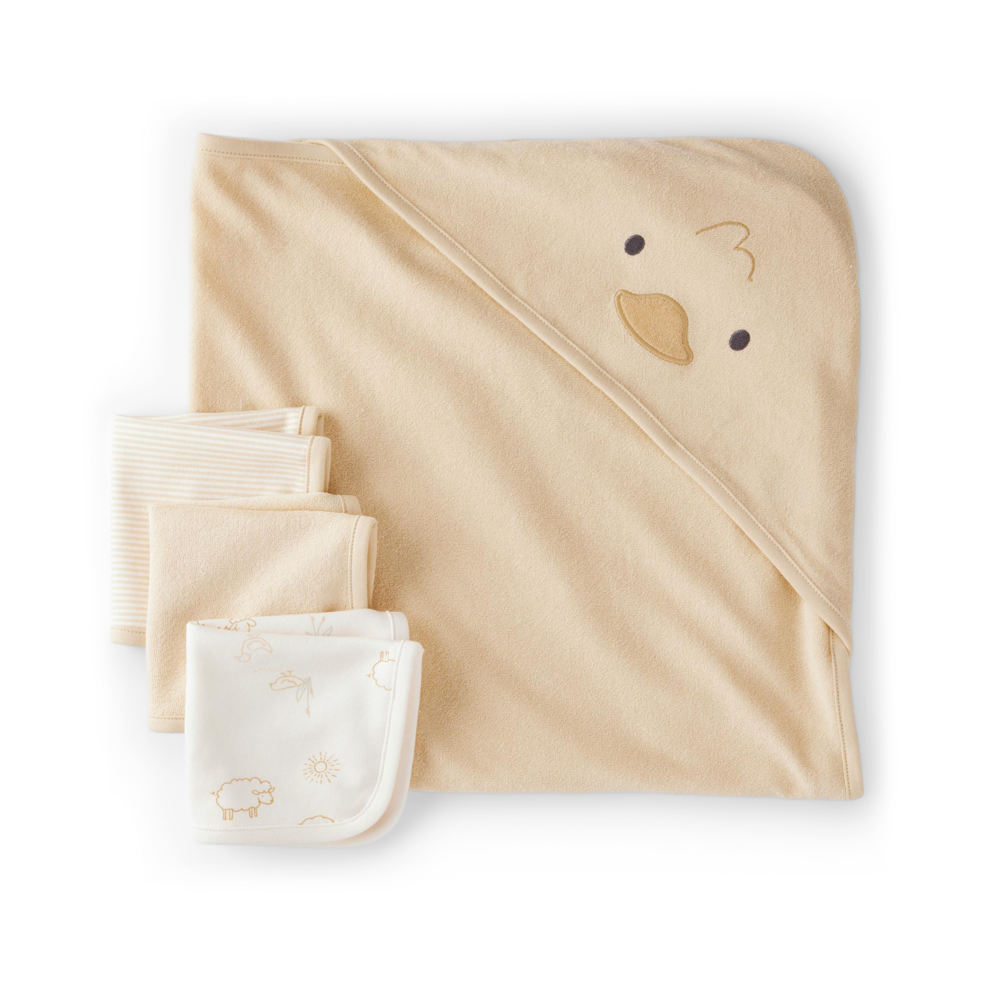This sweet towel wraps up baby in coziness, while the four-pack of washcloths ensures you have an essential within reach.