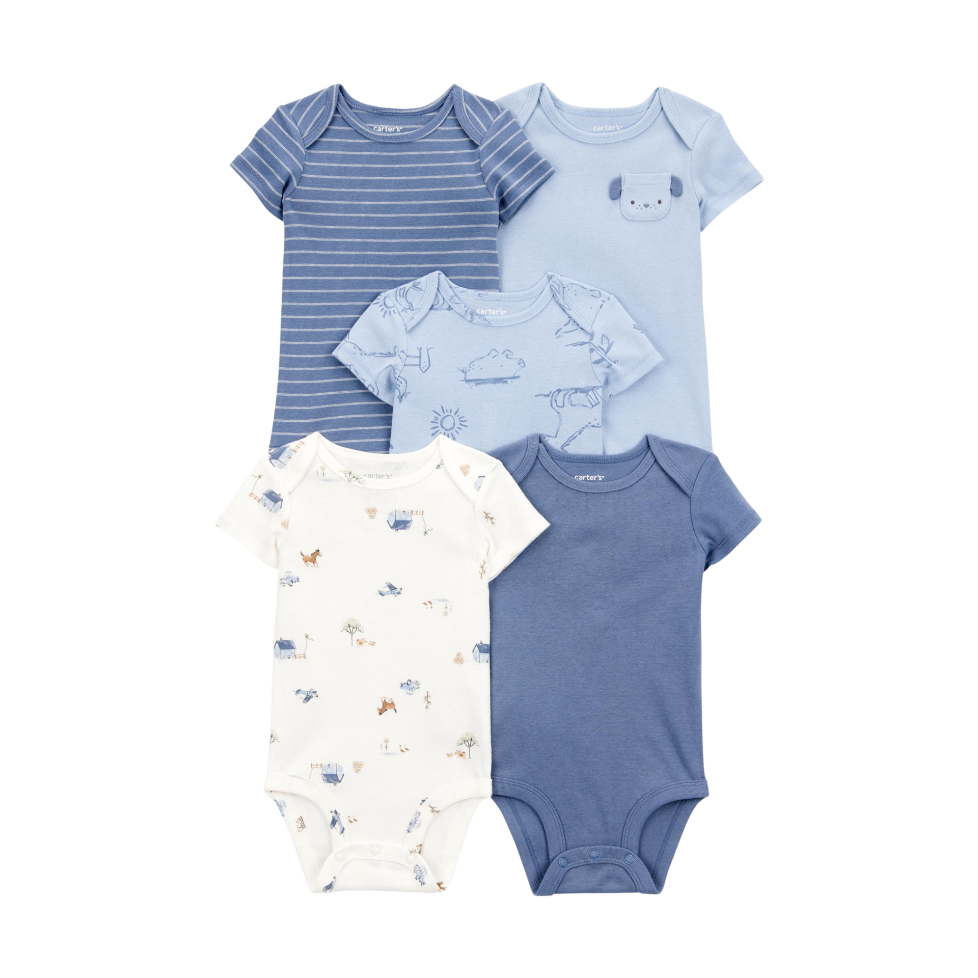 A 5-pack of versatile essentials with expandable shoulders for easy on and off (the bodysuit can go over the head or down the legs).