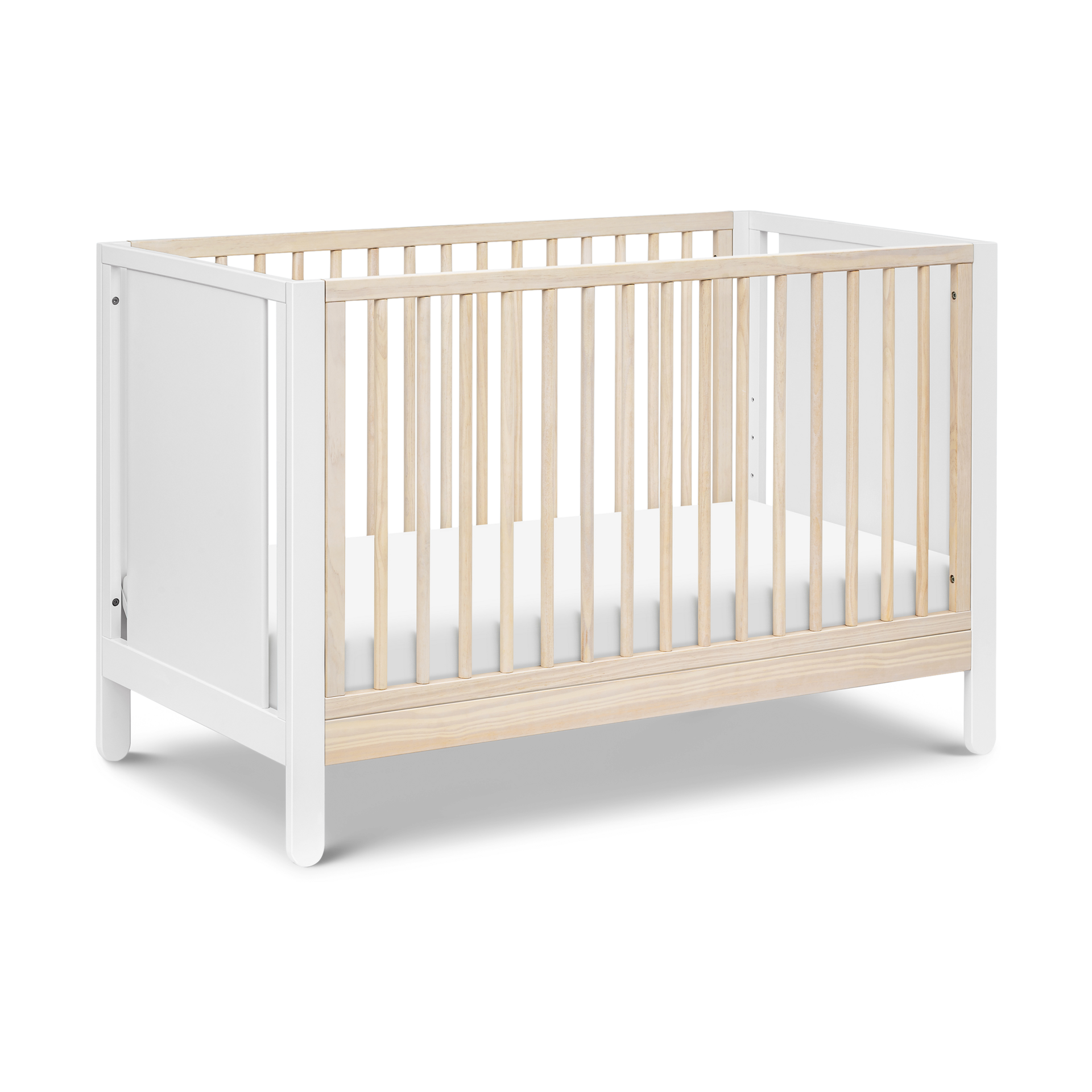 With its sleek two-toned finish and unique popsicle-shaped feet, this crib creates a stylish and functional centerpiece.