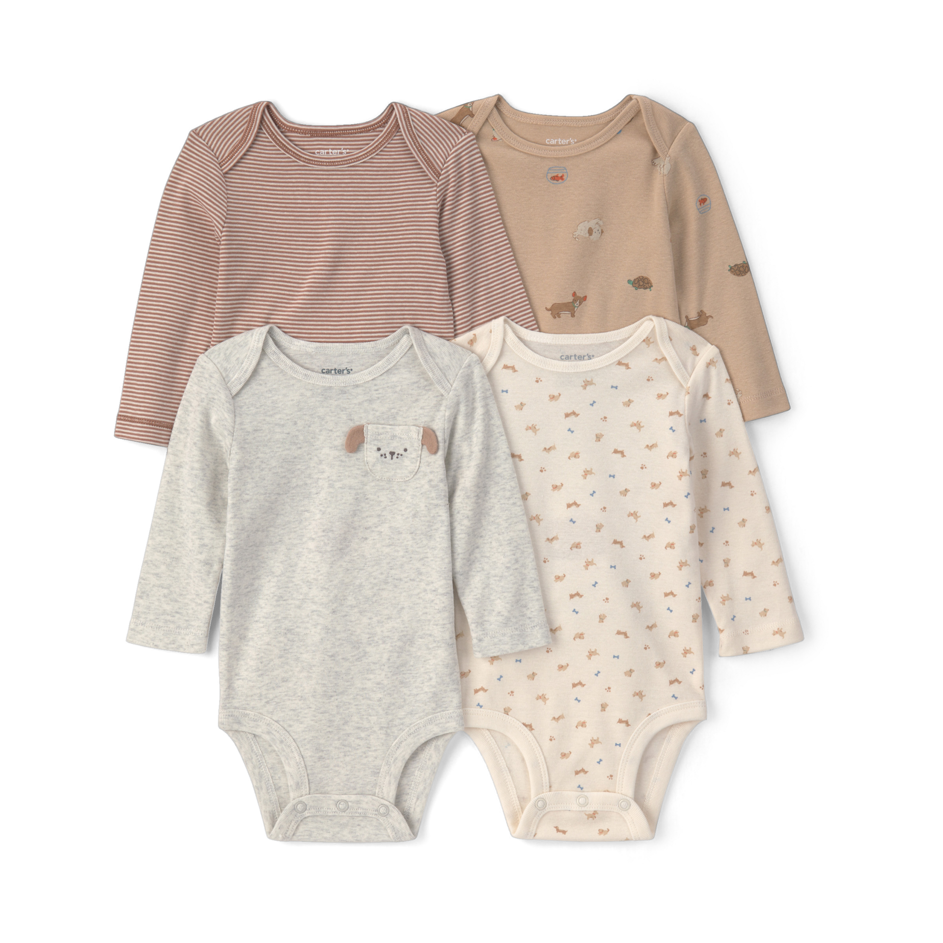 • Set includes four long-sleeve bodysuits