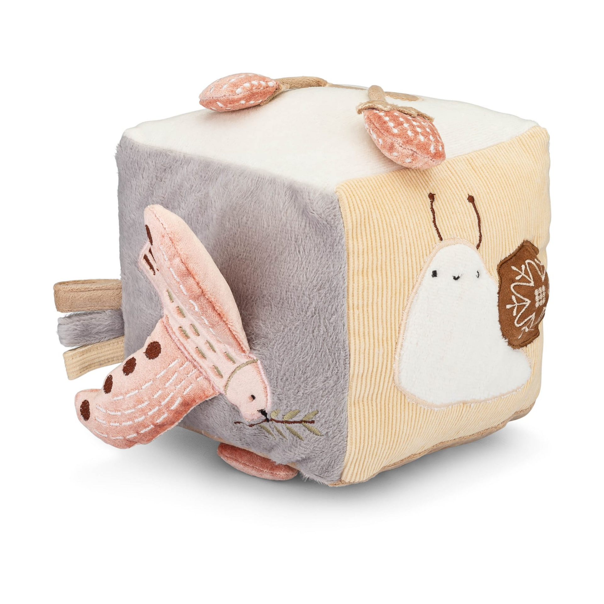 This interactive soft activity cube features textures, a mirror and sounds to encourage sensory development.