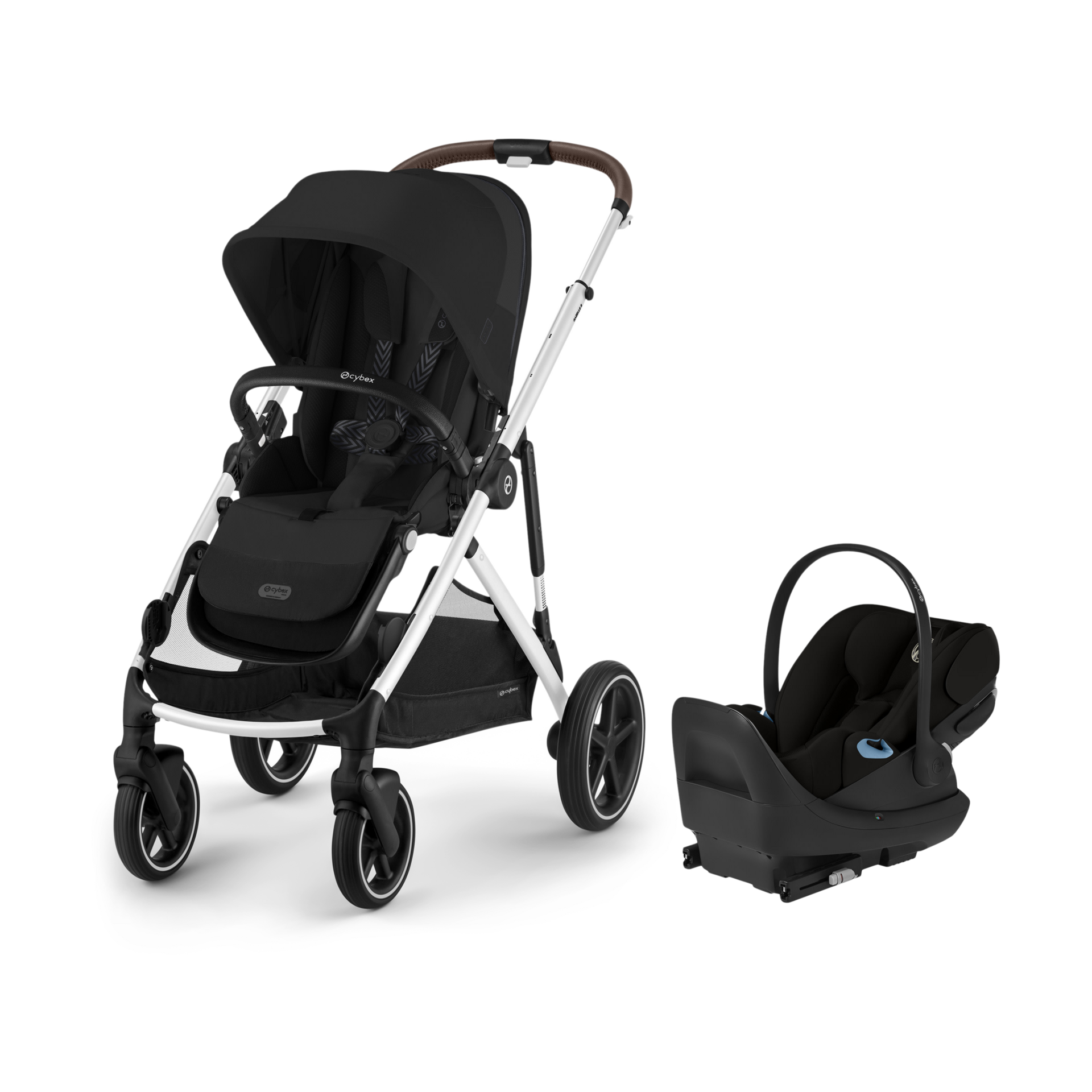 This travel system comes with the Cybex Gazelle S Stroller and Cloud G Pro Comfort Extend Infant Car Seat with base.