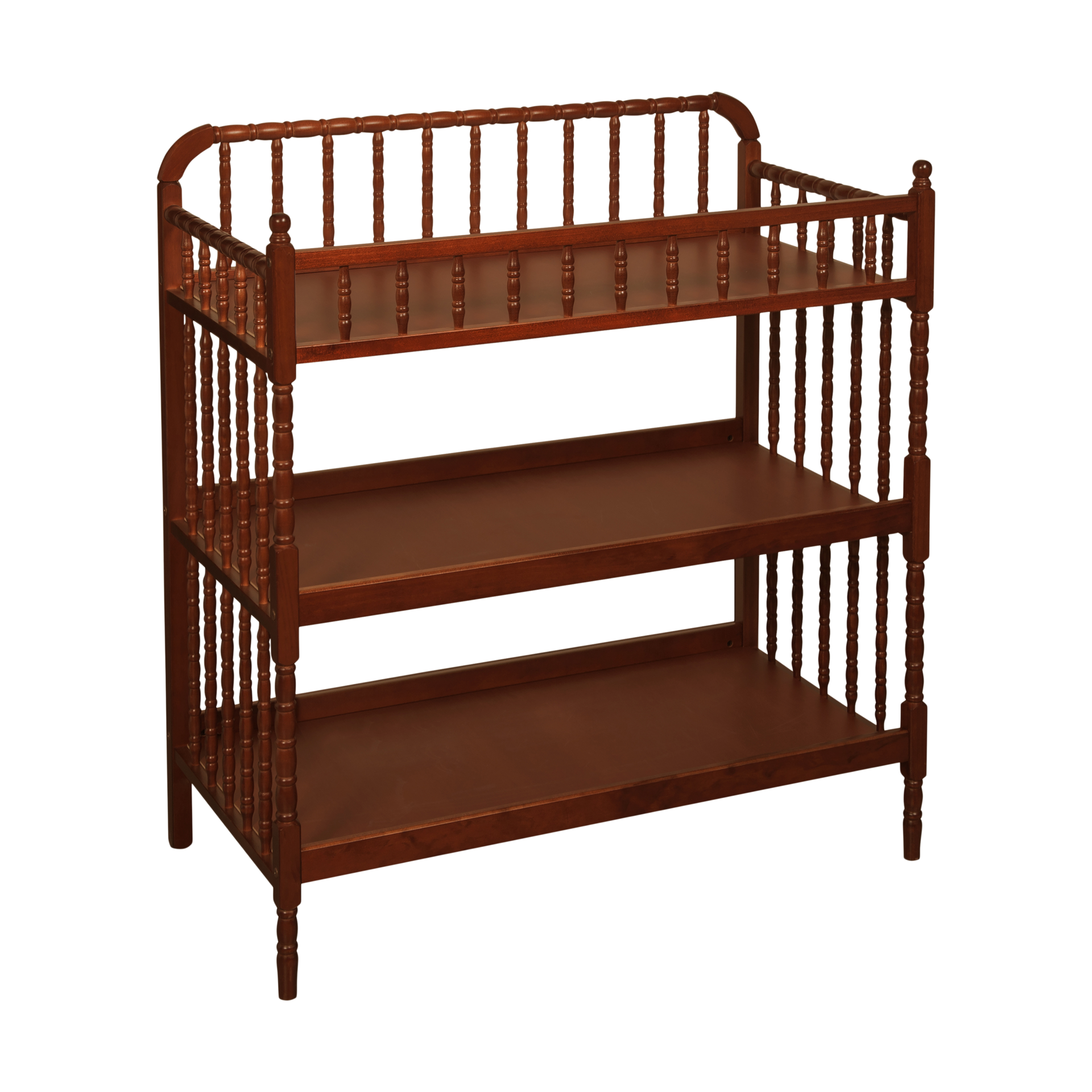 Delight in traditional beauty with DaVinci’s Jenny Lind Changing Table. Intricate spindle posts deliver classic grace from top to toe, for a perfect pairing with the Jenny Lind Crib. Spacious, open shelves keep diapers and lotions within easy reach for convenient changings. Coordinates with the Jenny Lind 3-in-1 Convertible Crib.