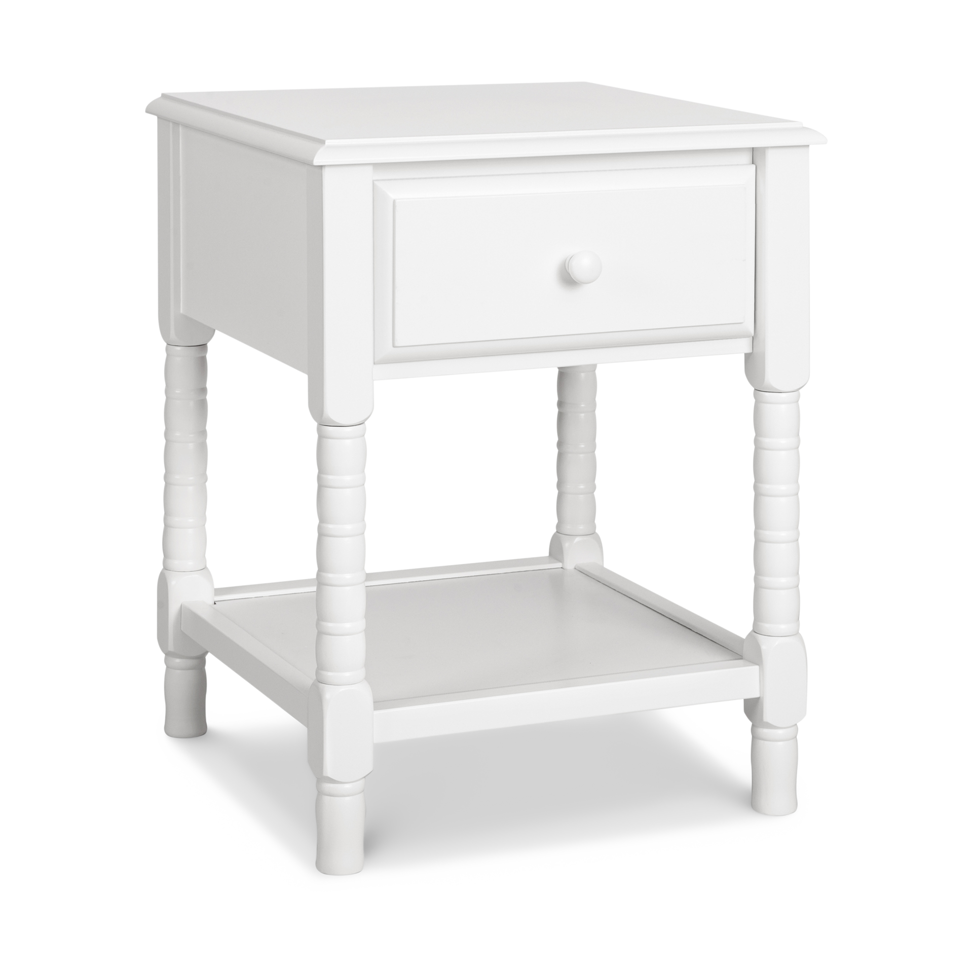 Designed with intricate spindle posts for a timeless look, the Jenny Lind Spindle Nightstand is the perfect height to place beside your nursery chair or bed.