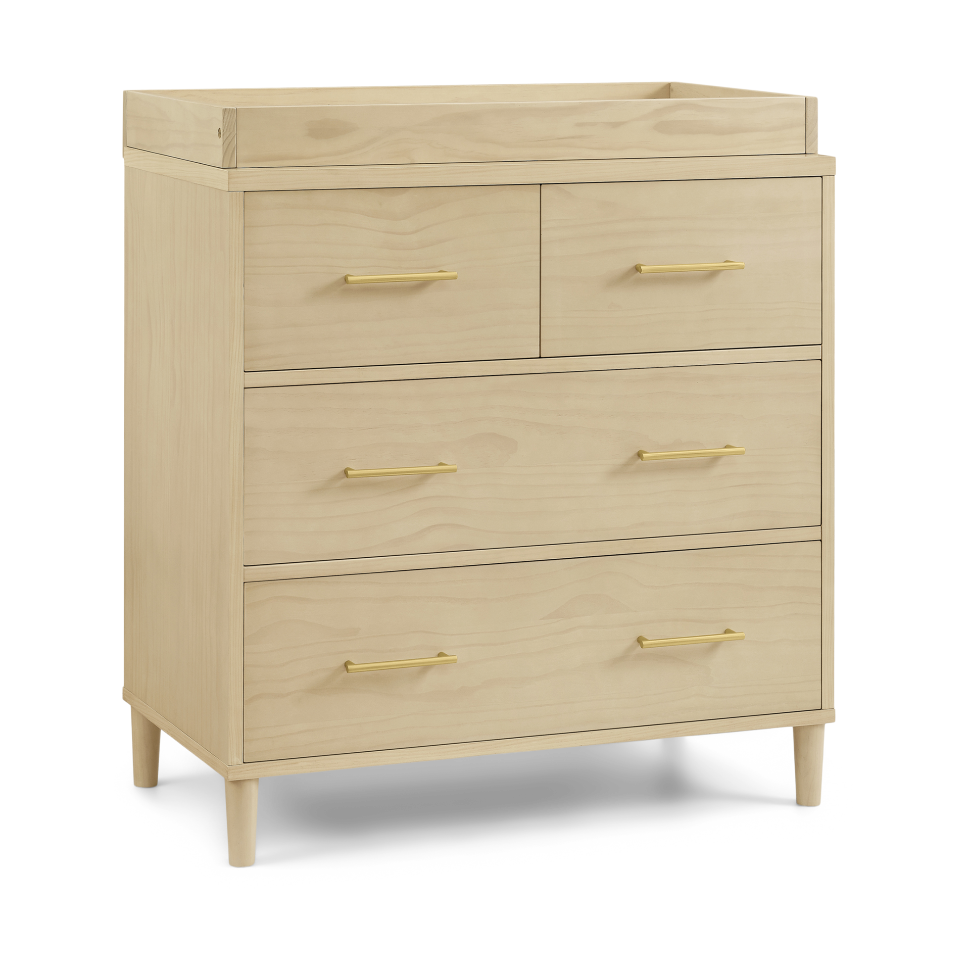 Designed with clean lines and tapered legs, the Classic Dresser with Changing Top features sleek metal hardware and four spacious drawers. It also includes a changing top (changing pad sold separately).