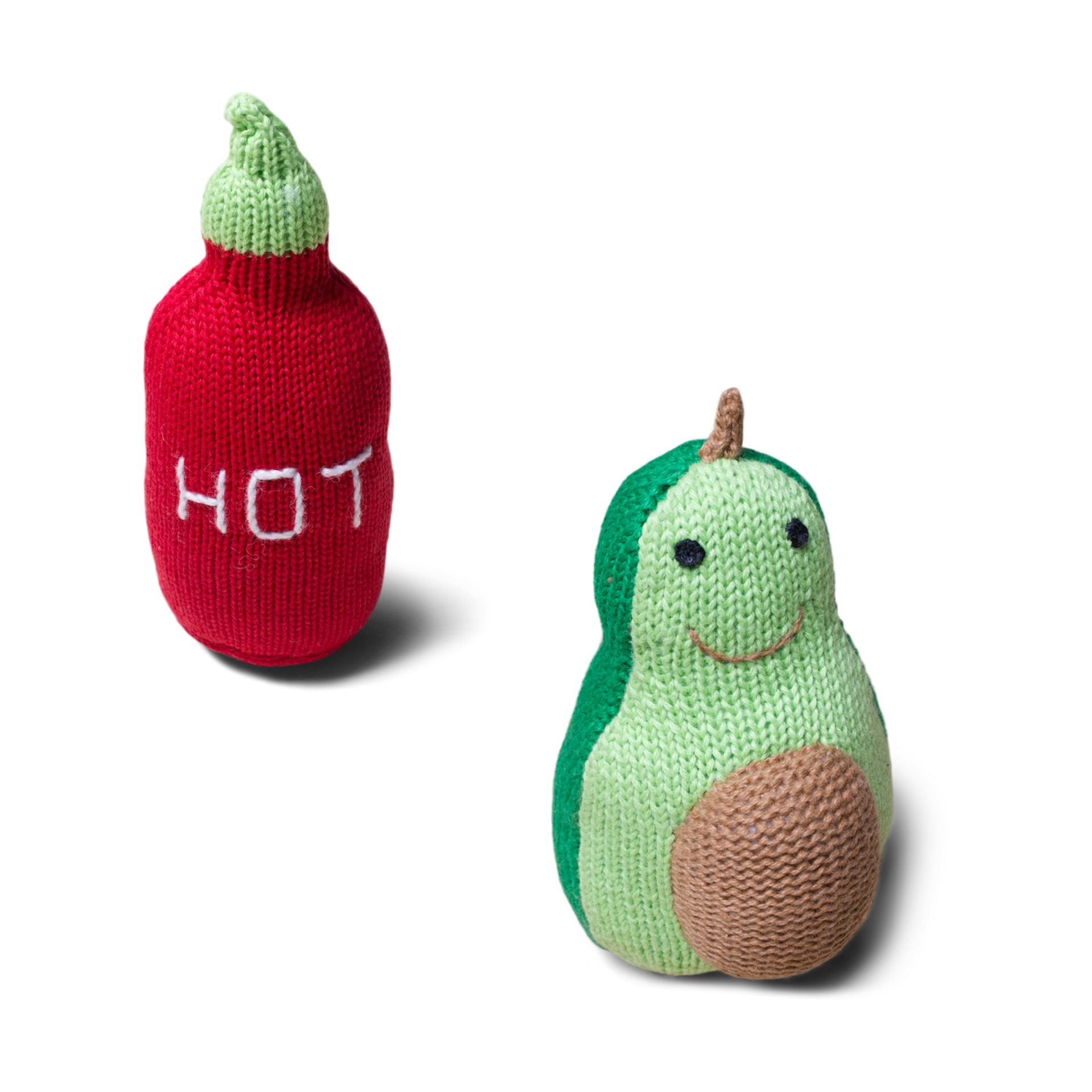 - Includes one Avocado rattle and one Hot Sauce rattle