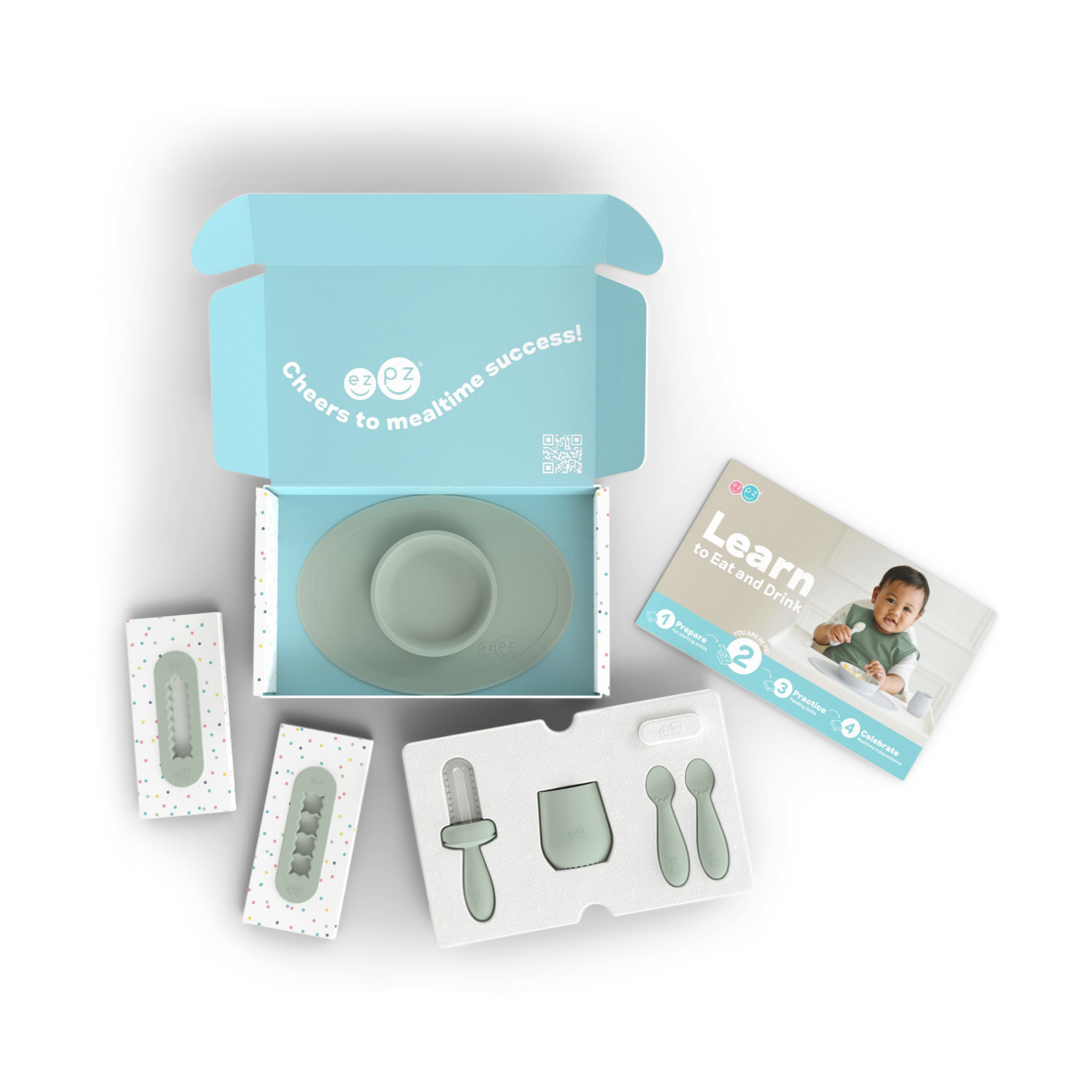 This kit includes the Baby-Led Gumline Feeder, Tiny Cup and Tiny Spoons, as well as the BLW Food Cutters and Tiny Bowl.