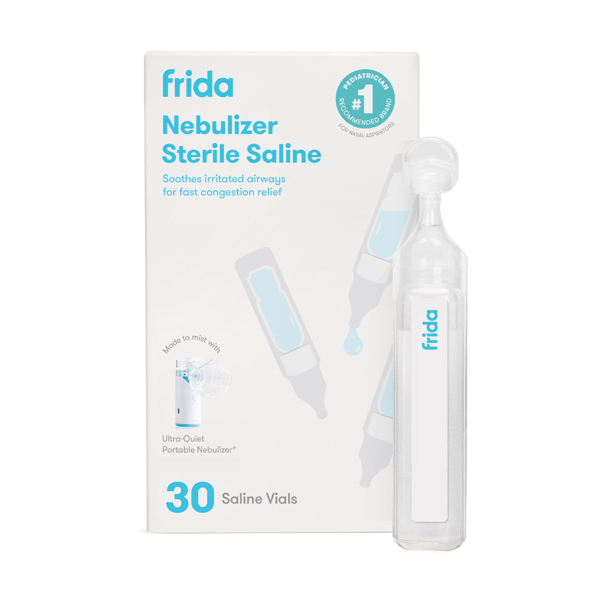 Designed to pair with the ultra-quiet Frida Nebulizer (sold separately), Frida Baby Saline Ampules offer gentle, mess-free relief for tiny noses.