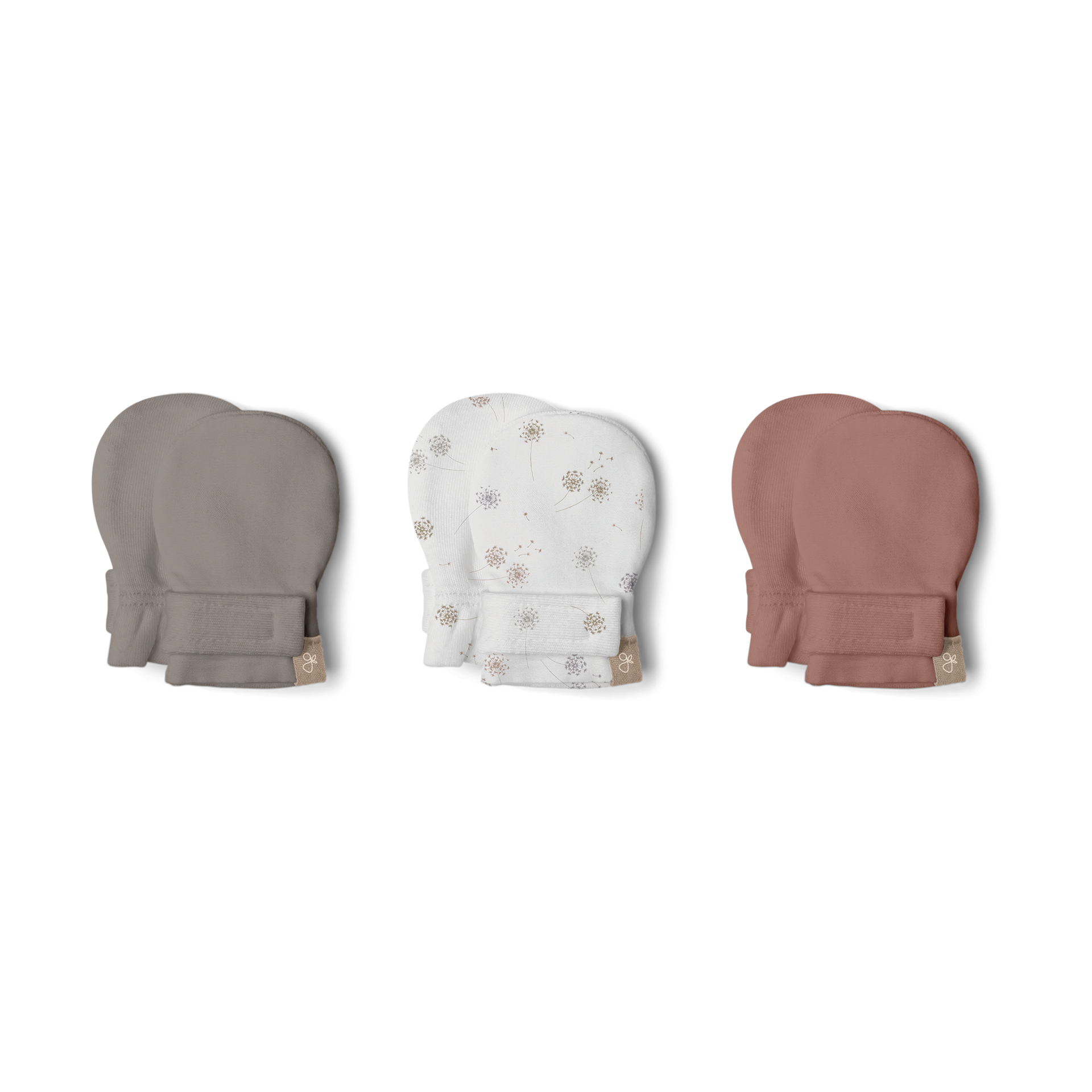 These luxuriously soft mitts have a high-contrast pattern on the reverse side that helps boost brain development (0-6 month size only). The signature two-part closure system protects little faces from scratches and germs and allows for an adjustable fit as baby grows.