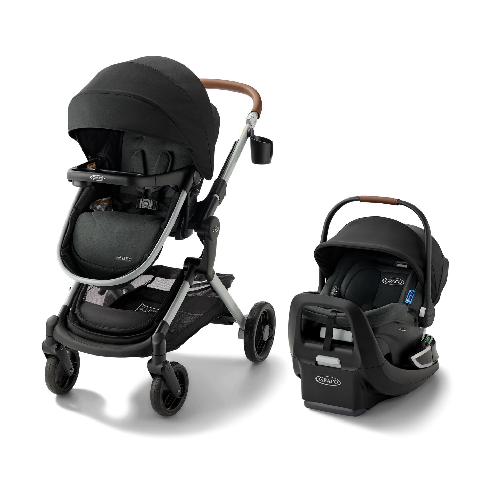 The Modes Nest 3-in-1 Travel System with the SnugRide Turn & Slide infant car seat and base makes it easy to stay connected with baby from day one.