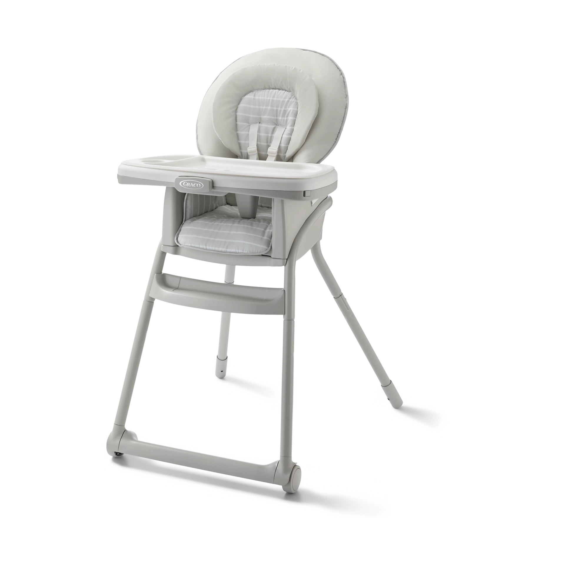 This Graco design offers six growing stages from infant highchair to a big kid table and chair. The highchair features plush infant head support and three recline positions for early comfort and a machine-washable seat pad for easier cleanup.