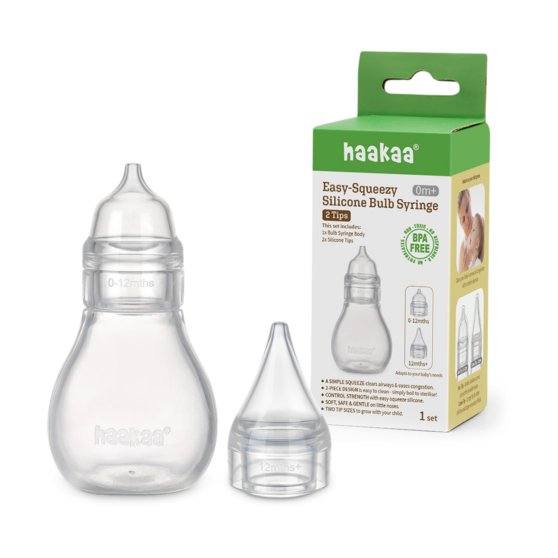 Haakaa’s Easy-Squeezy Silicone Bulb Syringe is a simple way to clear little noses.