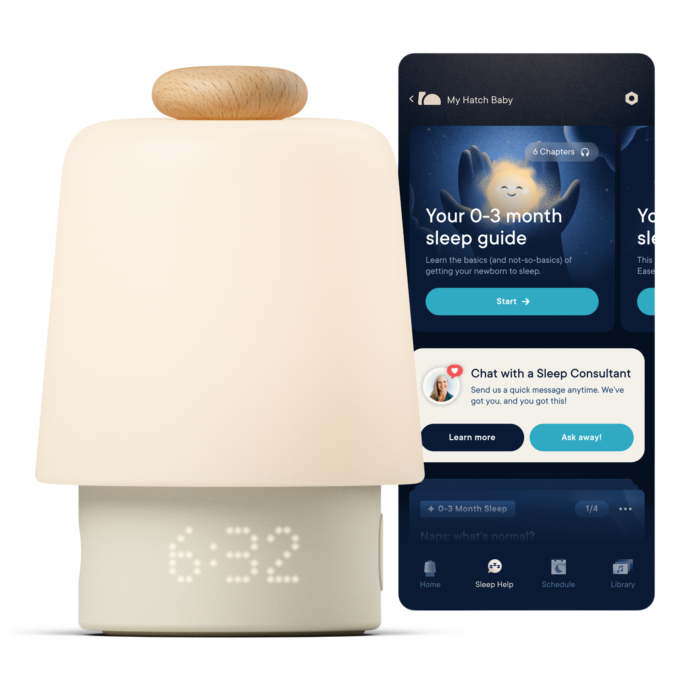 The Hatch Baby is your go-to for baby sleep support from night one. With 1:1 chat with certified sleep consultants and sleep guides for every milestone for the first-year, you’ve got a complete sleep toolkit at your fingertips.