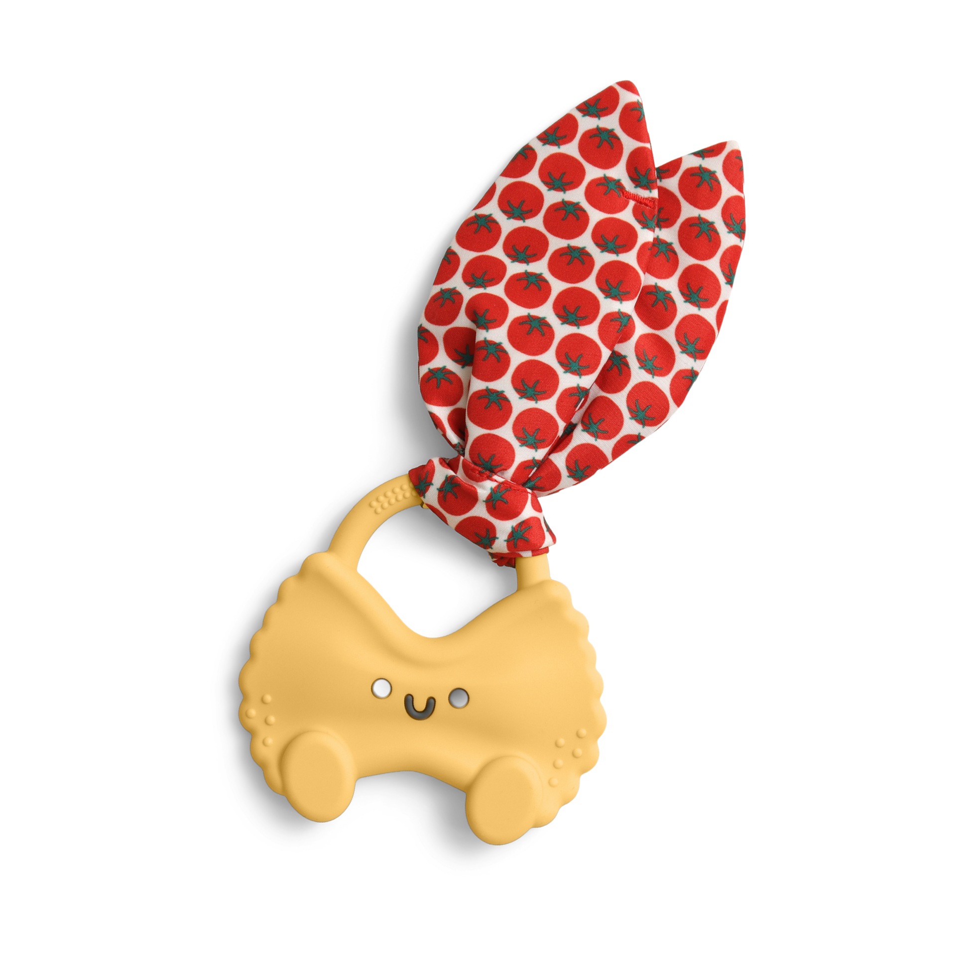 Designed for little hands to hold, this soft silicone teether features sensory crinkle fabric to stimulate the senses while soothing sore gums.