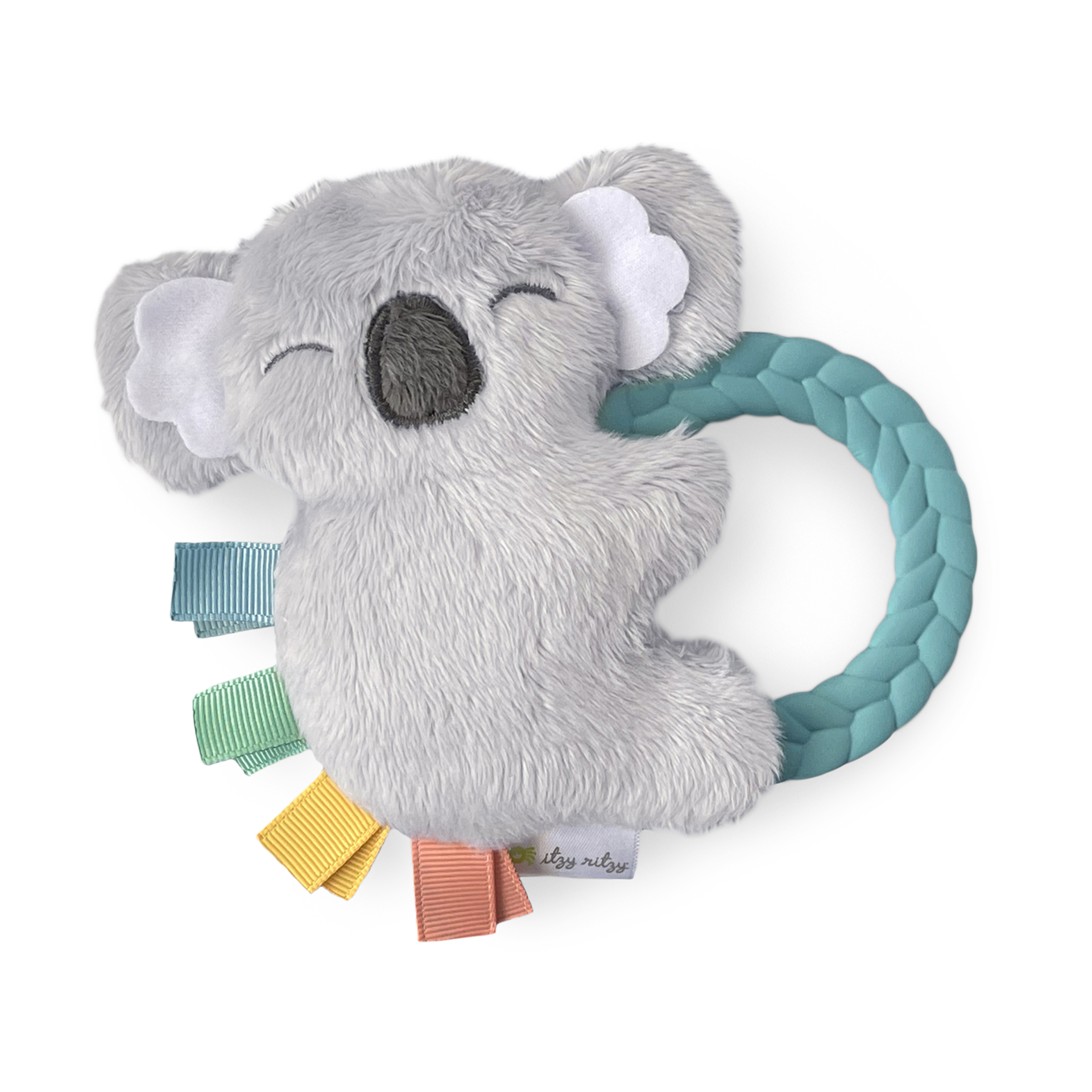The Ritzy Rattle Pal doubles as a plush character and braided teething ring to soothe sore gums.