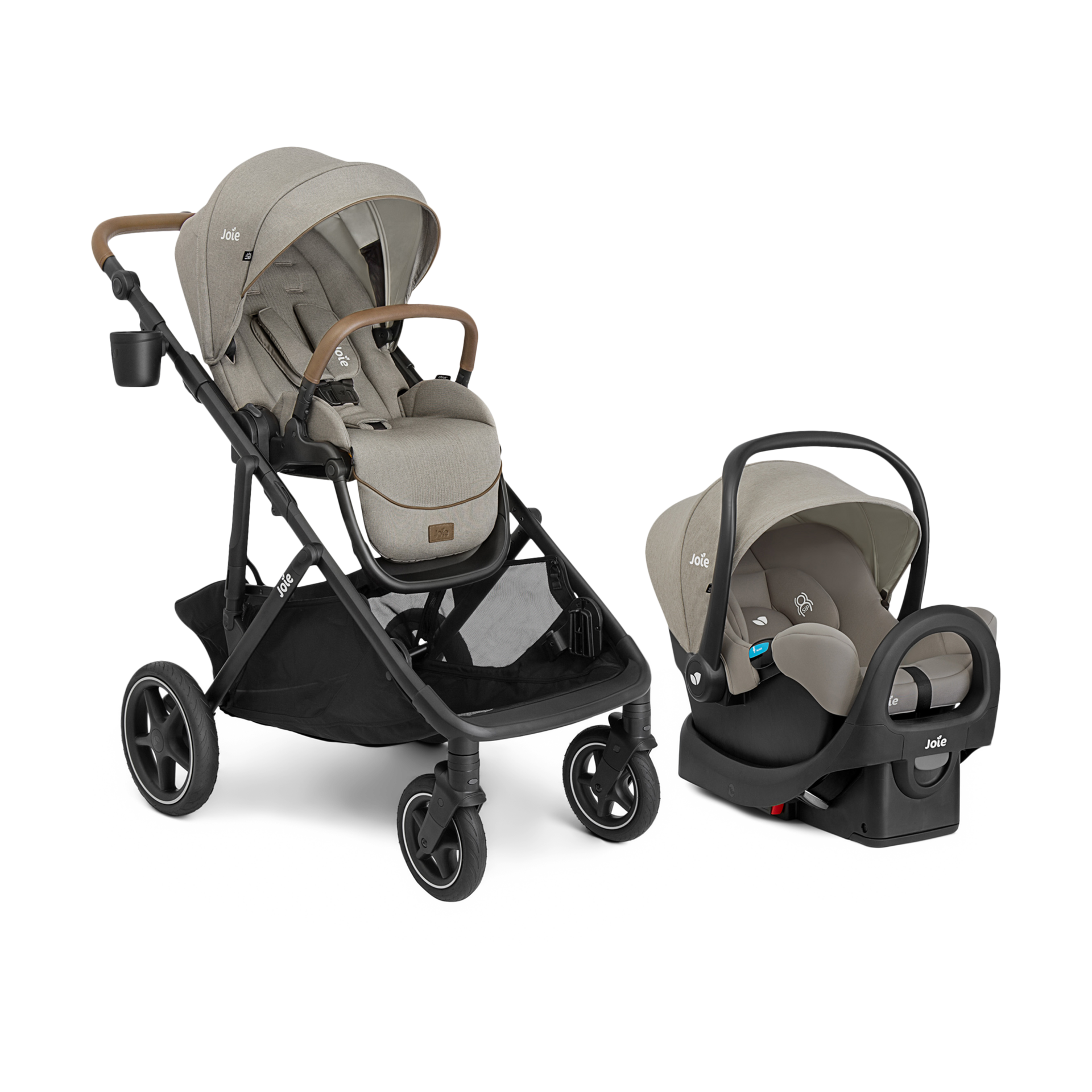Travel systems ensure your baby gear works seamlessly together so you can switch between driving and walking without disturbing baby. This travel system comes with the Joie Chive stroller and Rue infant car seat.
