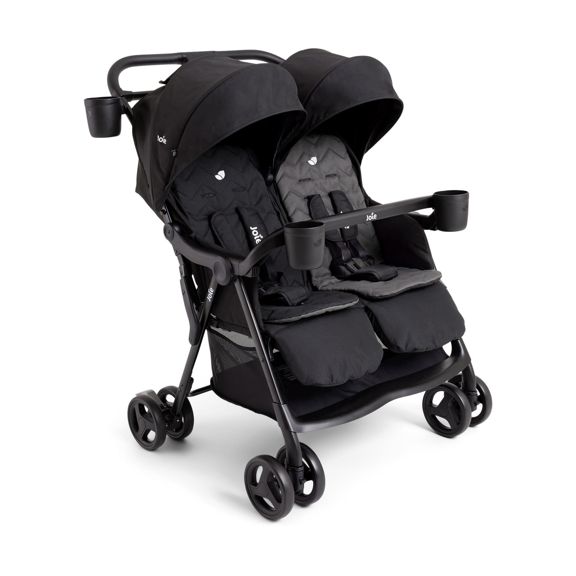 This double stroller seats two kiddos side-by-side so they can explore the world together. It’s compact enough to fit through standard doorways.