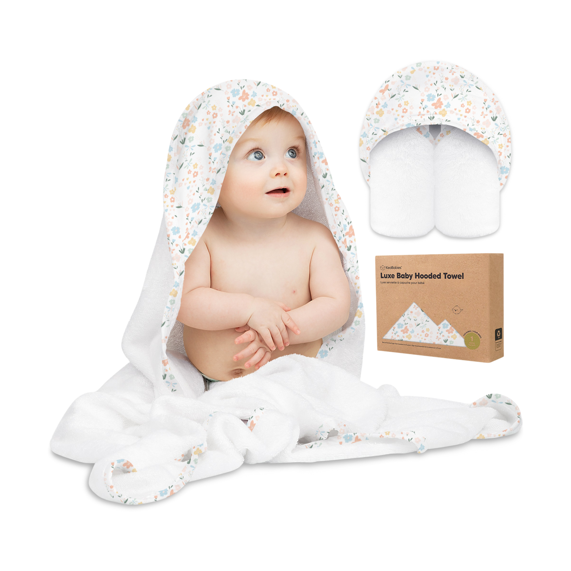 The KeaBabies Luxe Hooded Towel is an extra generous size (35” x 35”) for coziness and comfort. Made with 500 GSM bamboo fibers, the towel is ultra soft and highly absorbent (it absorbs water 3x faster than a cotton bath towel) and gentle on baby’s skin.