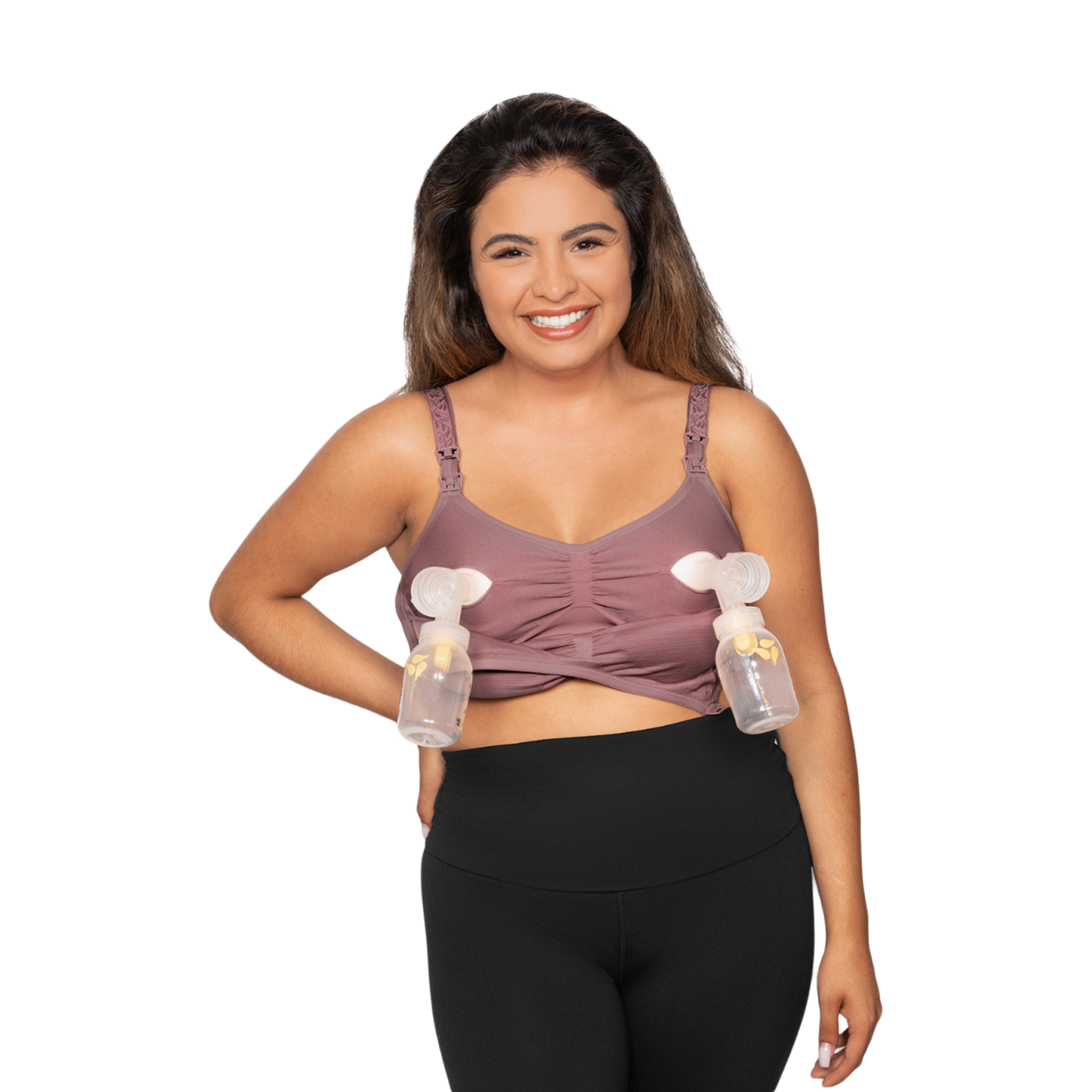 This innovative bra is designed for both breastfeeding and hands-free pumping.