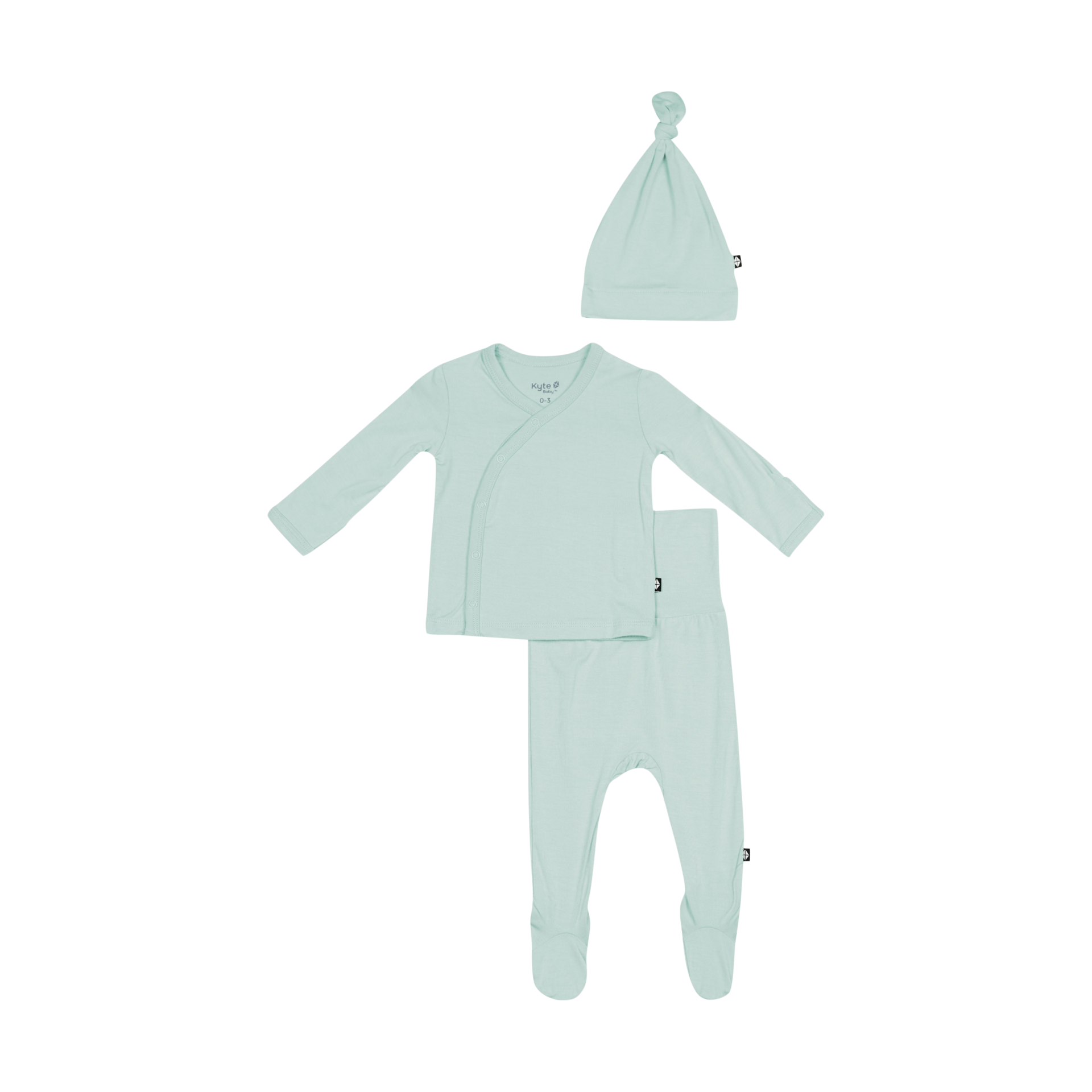 This three-piece newborn set comes with a wrap-style shirt (no over the head), comfy-waistband pants and a matching cap an adorable finishing touch.