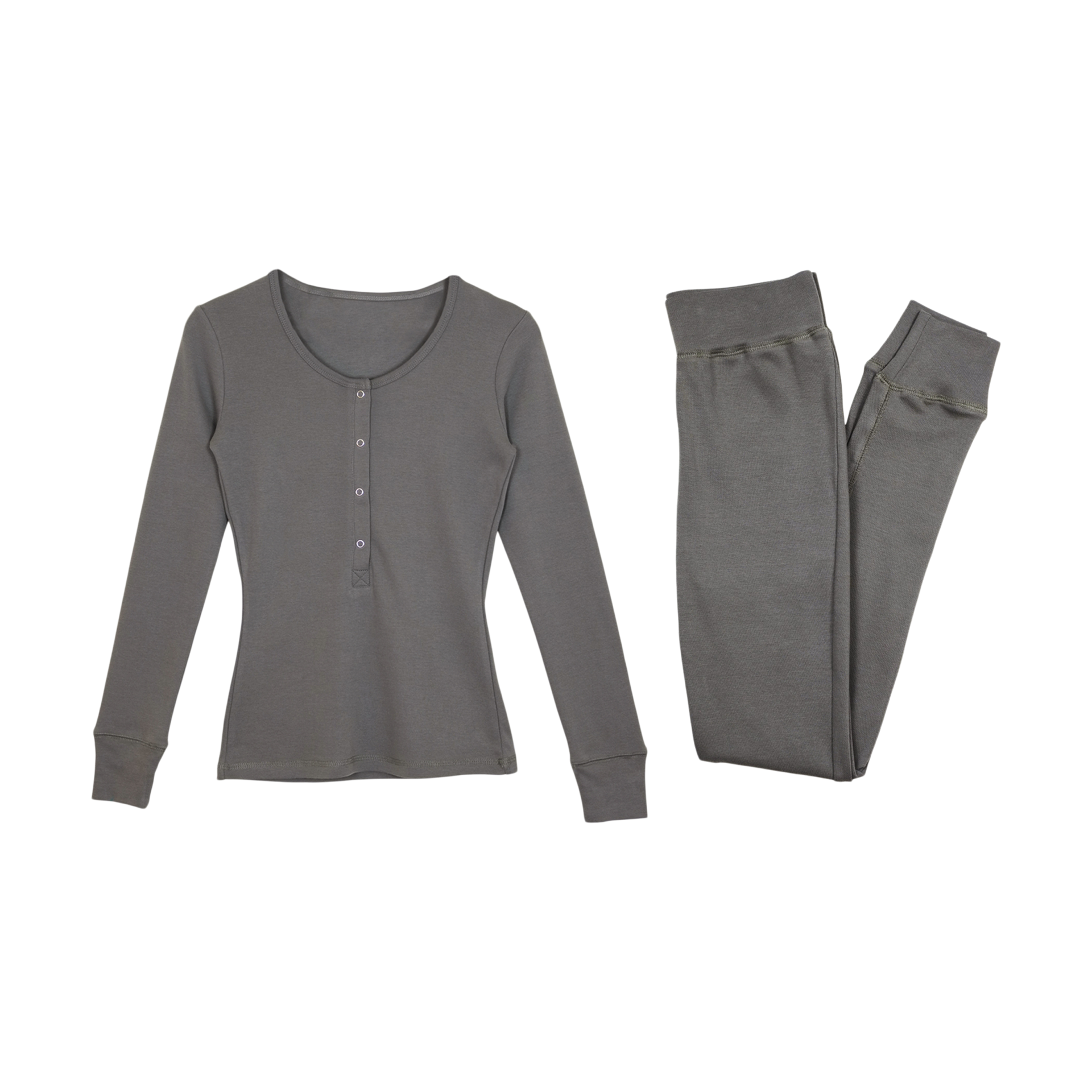 Made from ultra-soft, 100% organic cotton, this duo includes a relaxed-fit top and legging-style bottoms. The top features four snaps for easy nursing access, and the bottoms have a form-flattering design with a flat waistband.