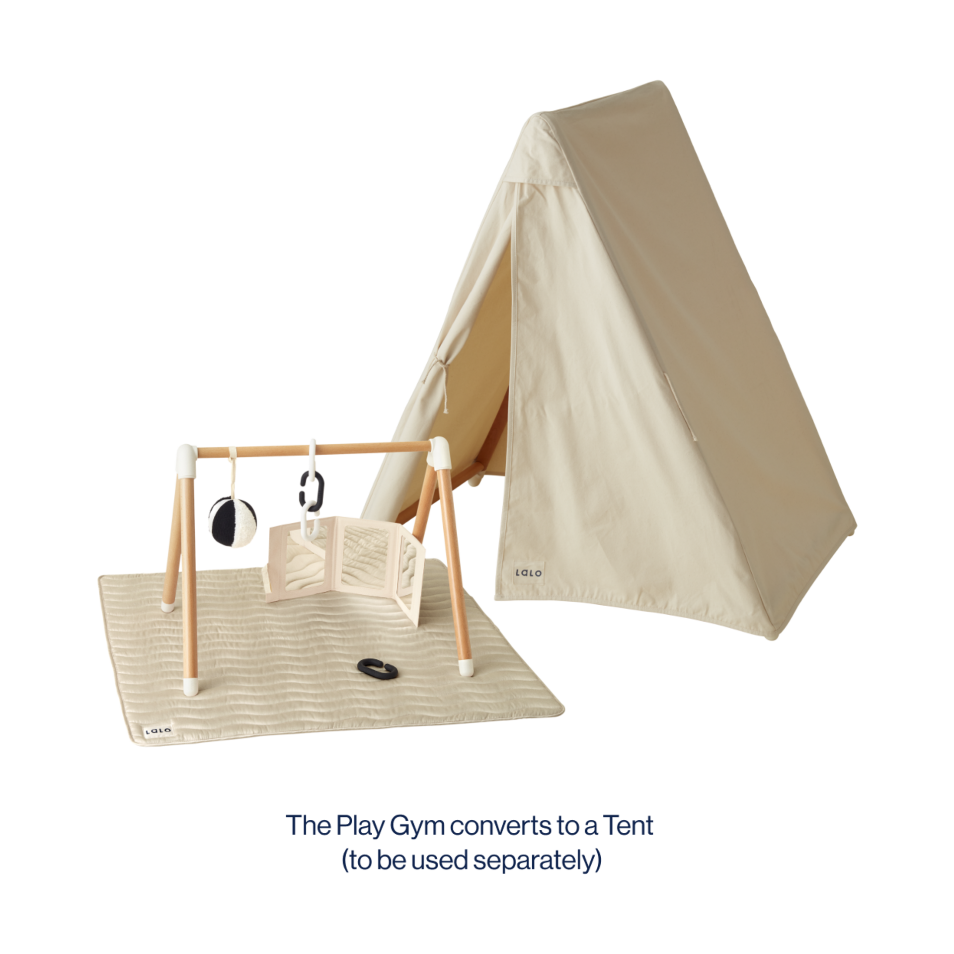 Created to be used from day one, The Play Gym is a safe space for your little one to get stimulation. When your baby is ready (around a year old or so), the Play Gym converts in a Tent to spark little imaginations through creative play.