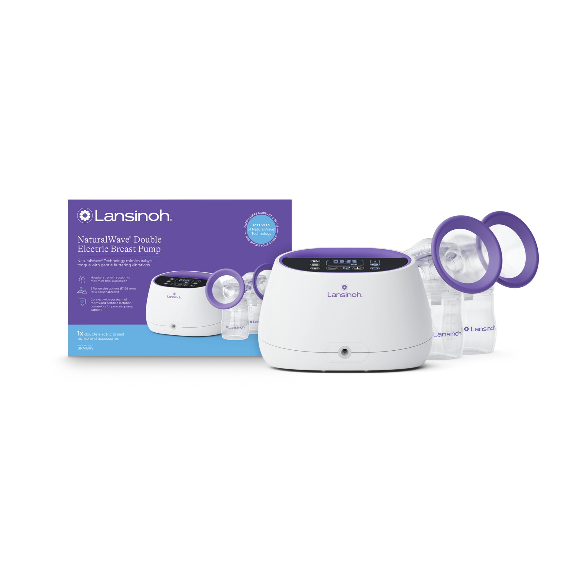 Pair with Lansinoh’s other pumping and breastfeeding essentials like the NaturalWave baby bottles, breastmilk storage bags, pumping bra and breast pads.