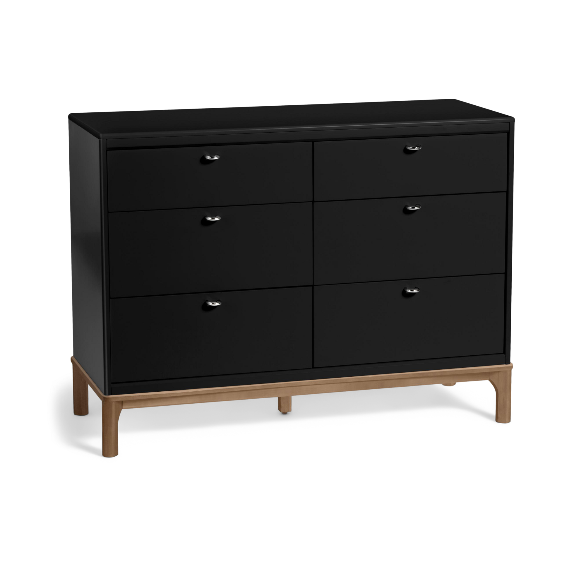 Six staggered-size drawers offer plenty of storage. Drawers are highlighted by modern metal pulls, creating a clean, minimalist look.