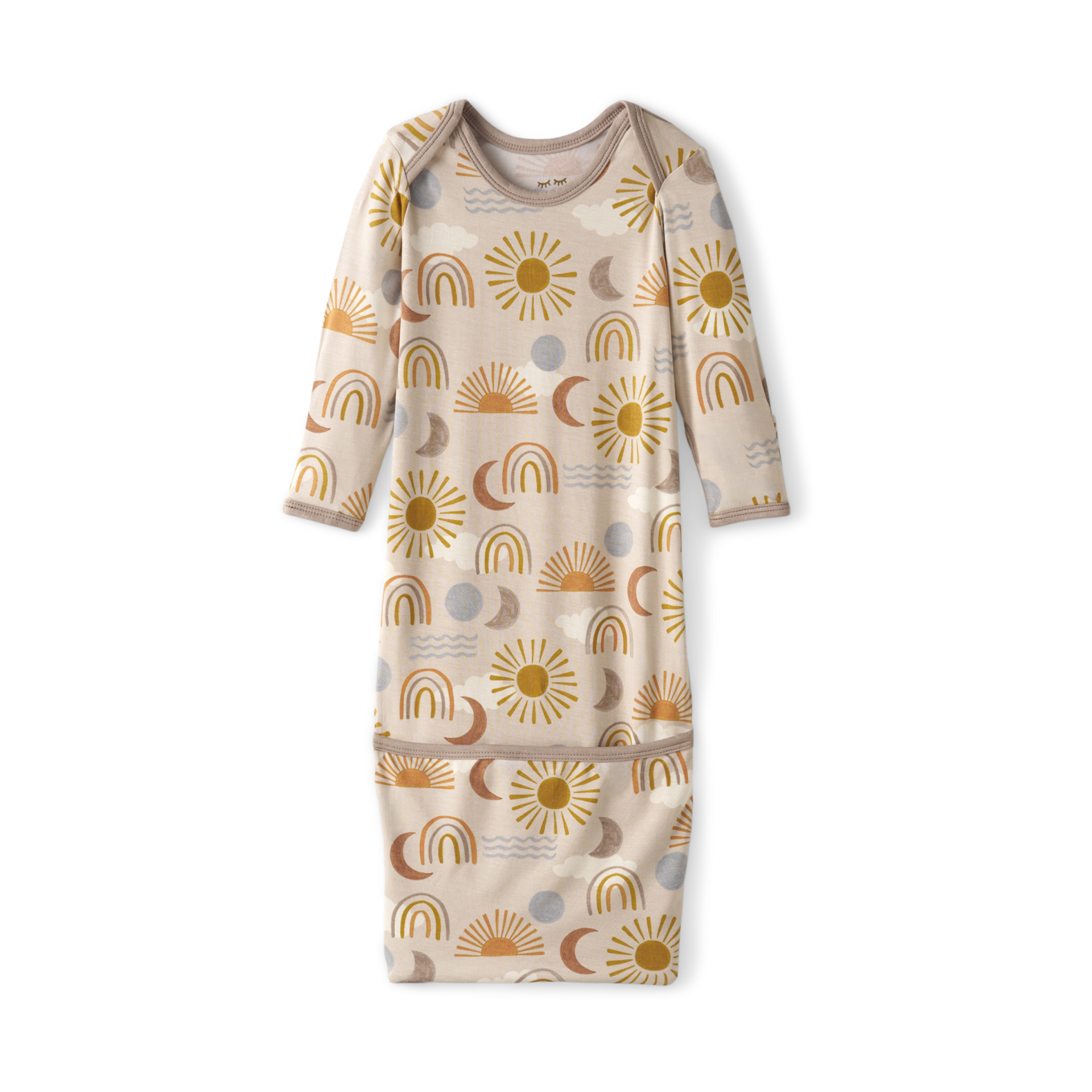 Made from buttery soft Lunaluxe Bamboo, this newborn gown features fold-over mittens to protect tiny cheeks.