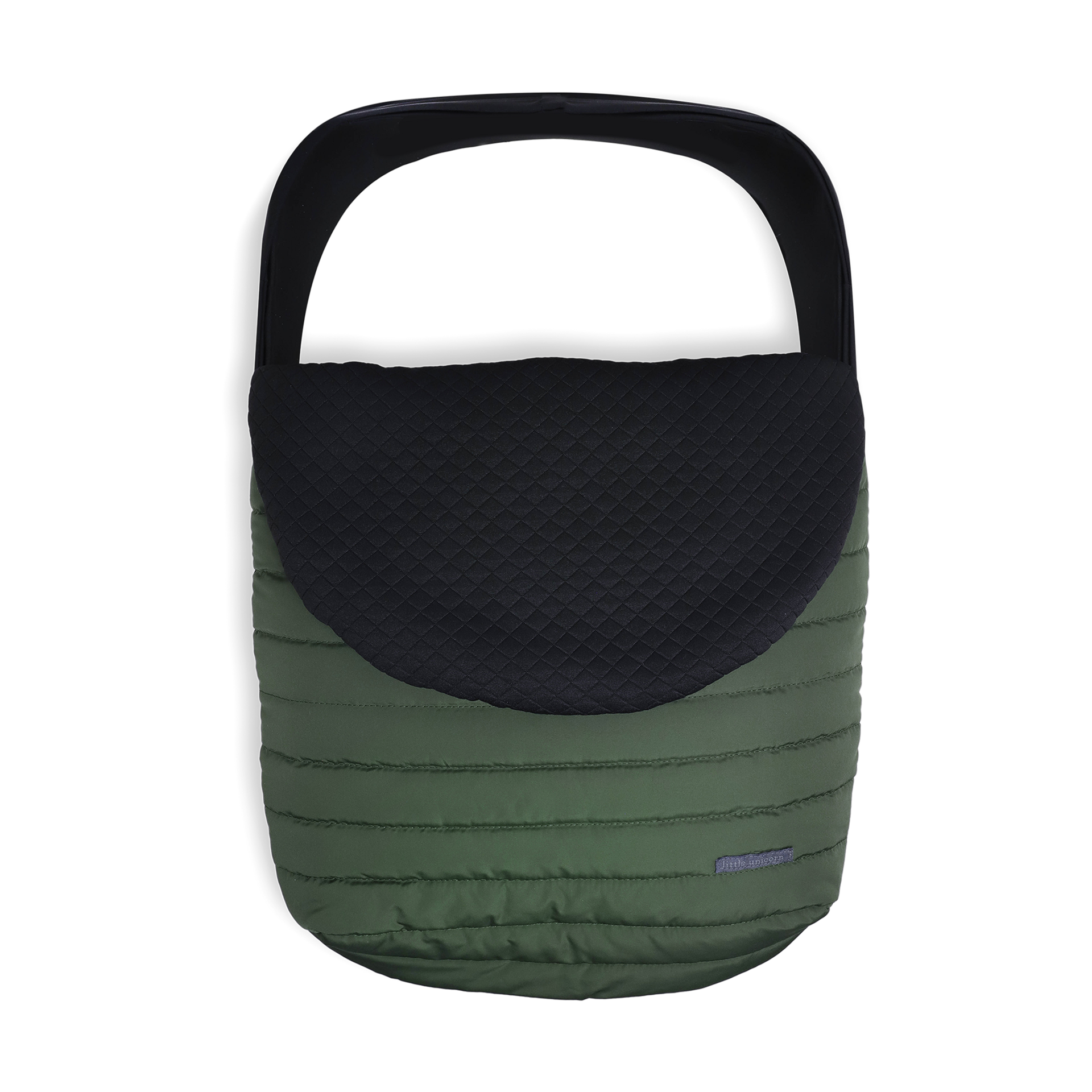 This weather-resistant car seat cover keeps baby warm on cool-weather outings. The stretch band design makes for quick application and removal, even over canopies.