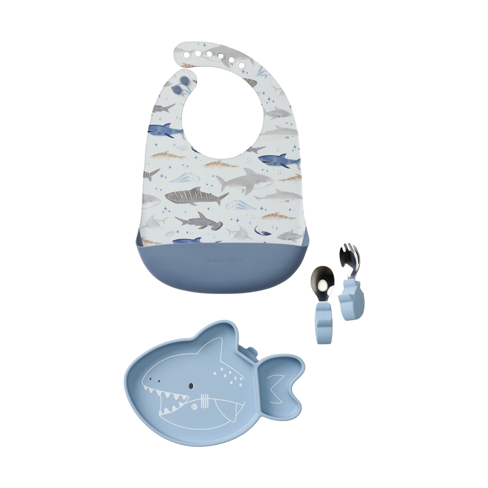 This starter set combines playful designs with practical features. It comes with a Silicone Bib, Learning Utensils and Silicone Plate.