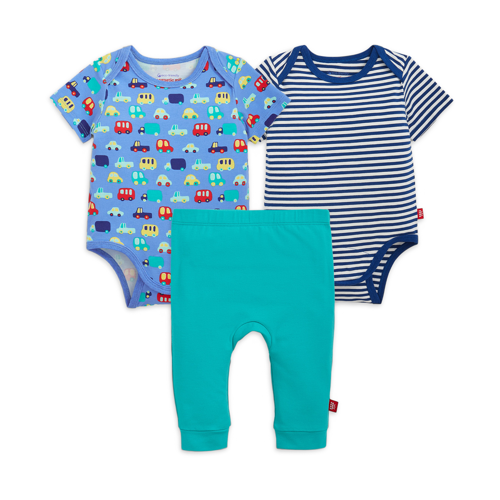 This Magnetic Me set comes with two bodysuits and a matching pair of pants for outfit versatility.