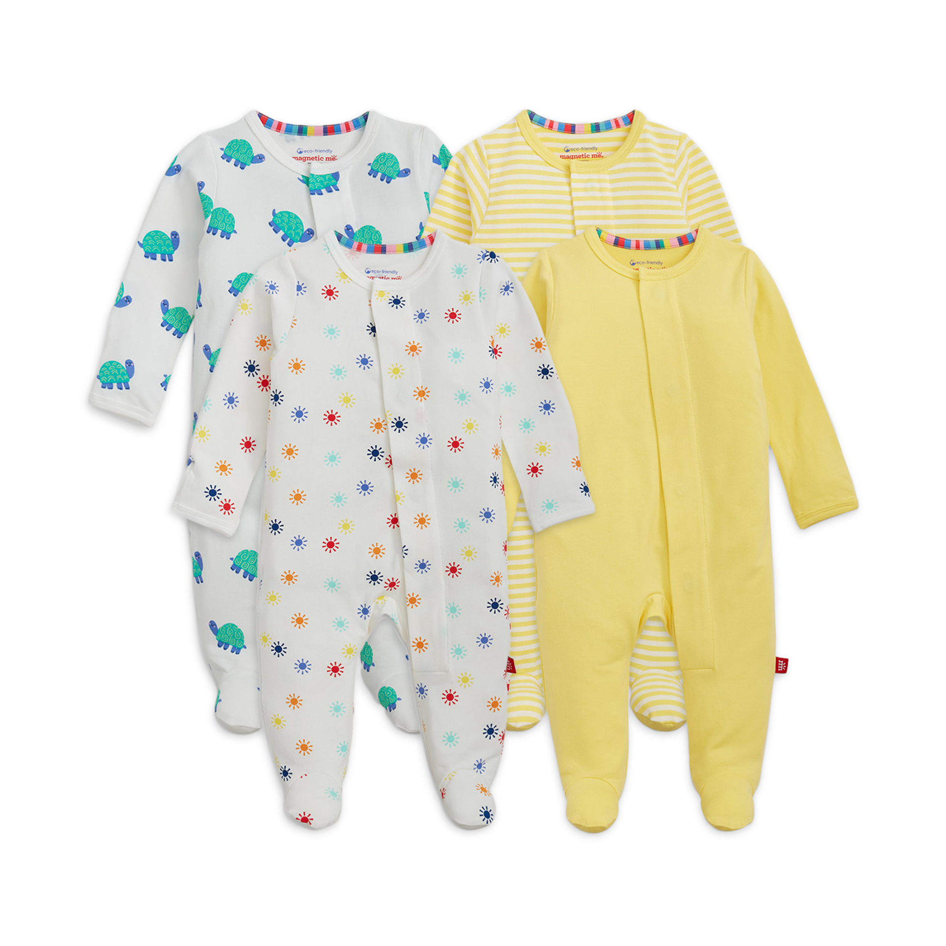 Magnetic closures make for quick, easy dressing and diaper changes.