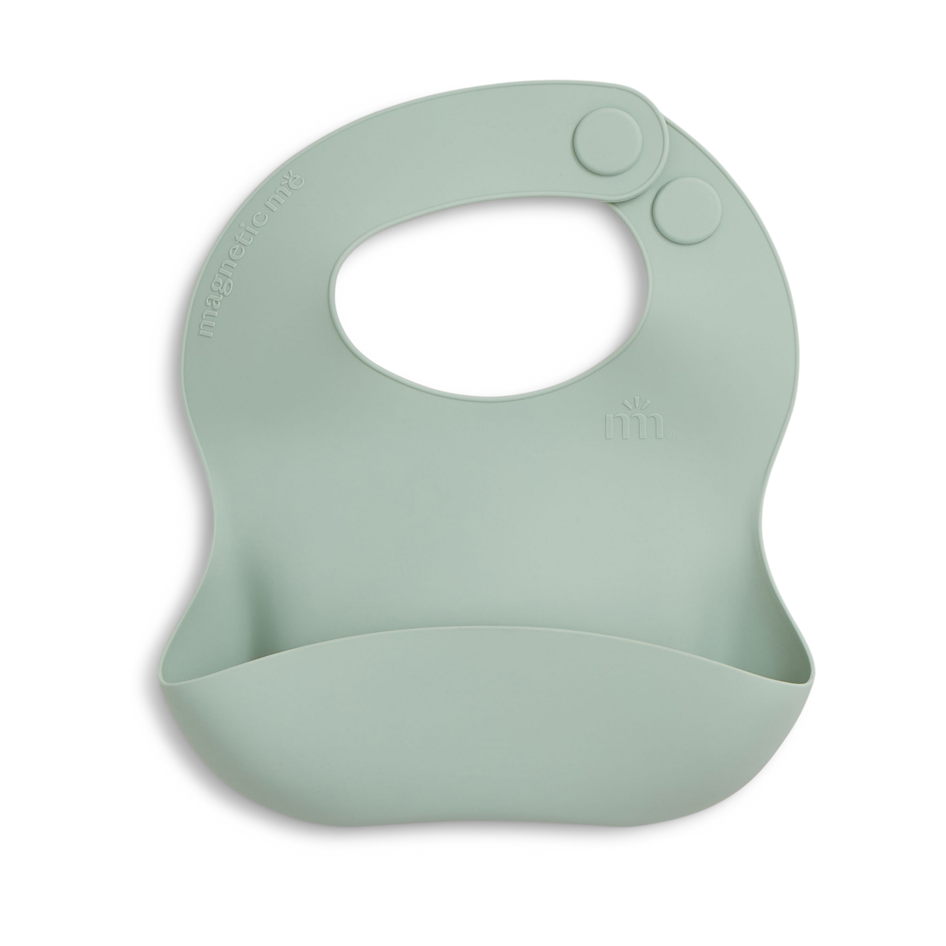Made from easy-to-clean, BPA-free material, this magnetic bib features a handy pouch for unavoidable falling foods, while magnets keep it securely in place.