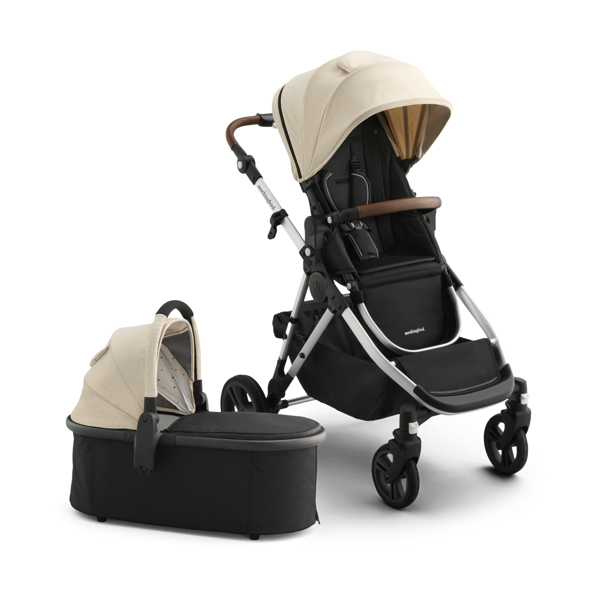 This Mockingbird bundle includes the Mockingbird Single-to-Double Stroller 3.0 and Bassinet, usually sold separately. When paired together, you can stroll safely from birth.