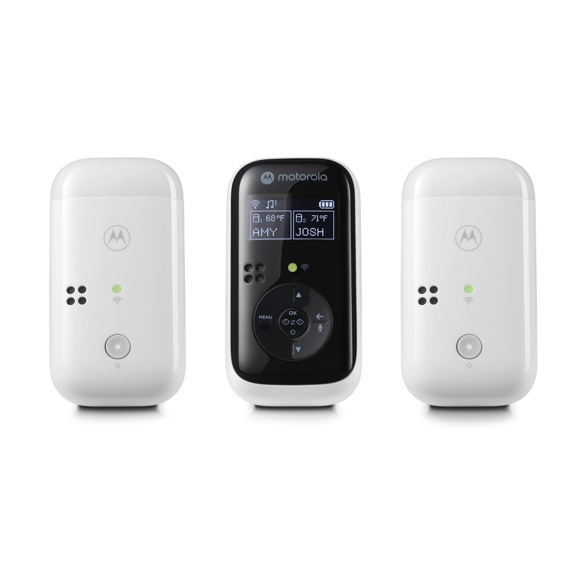 This HD audio baby monitor allows you to keep a close ear on two rooms at once with crystal-clear sound quality, long-range coverage and the convenience of portability—all without the need for main power. Listen to both rooms at the same time, focus on one or cycle between the two for flexibility.