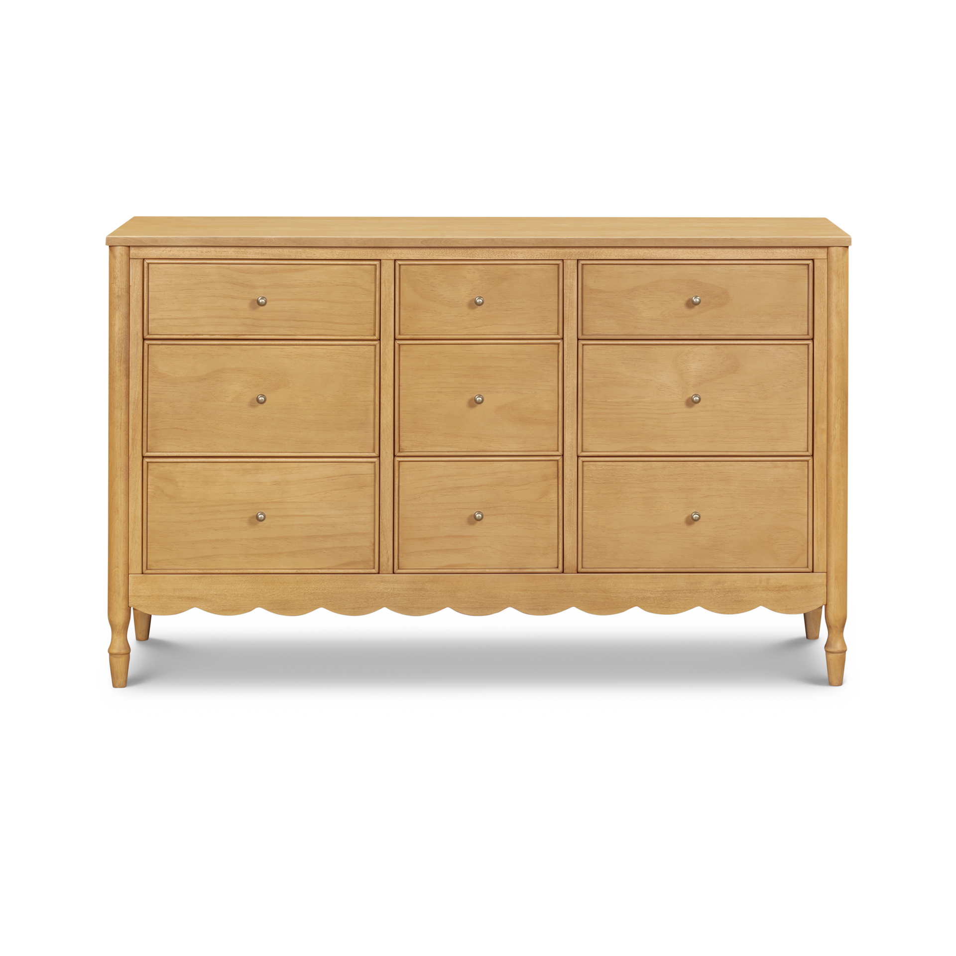 The scalloped base and turned legs add a touch of romance, while nine spacious drawers keep everything beautifully organized from baby essentials to everyday favorites.