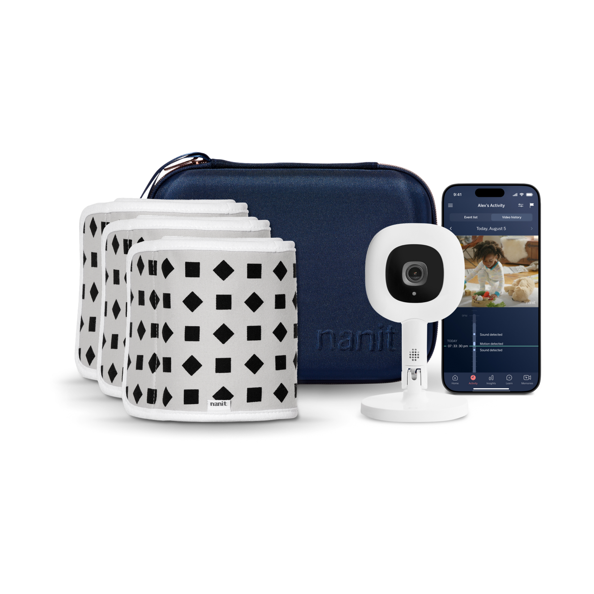 - Includes Nanit Pro Camera, Flex Stand, 1 Small Nanit Breathing Band, 1 Medium Nanit Breathing Band, 1 Large Nanit Breathing Band, Travel Case and free 6-month trial of Nanit Insights Membership which unlocks sleep data tracking + insights