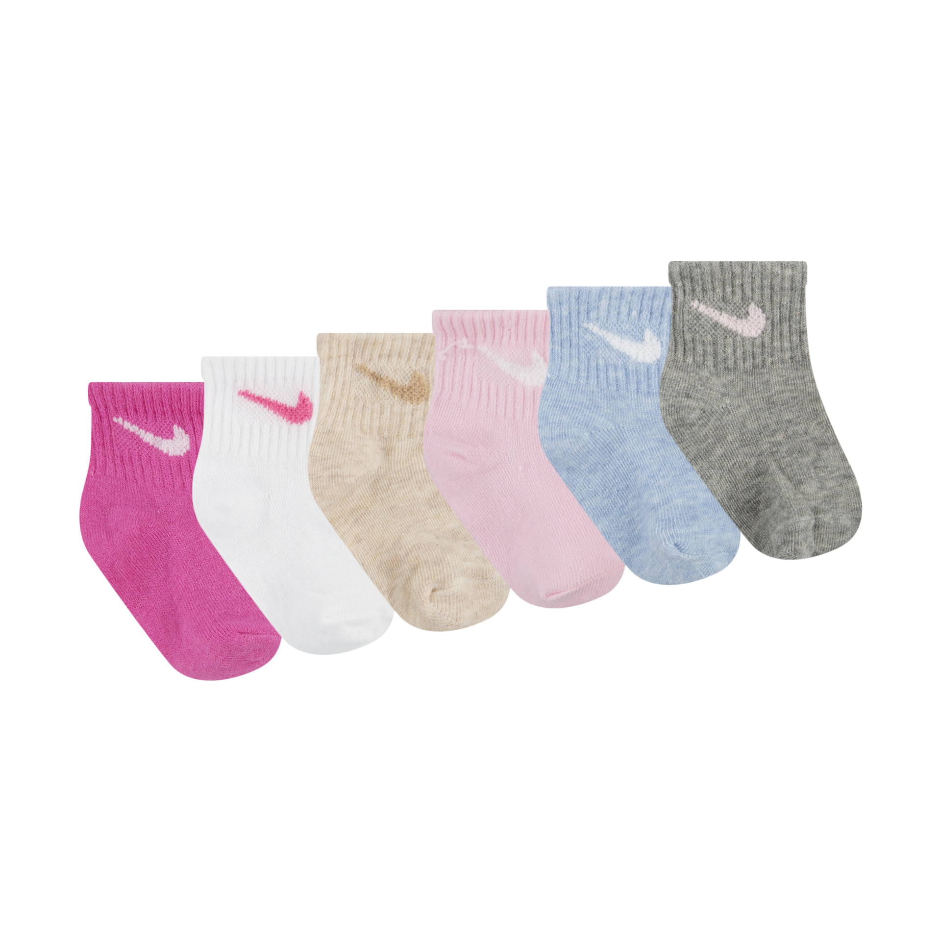 The NIKE - Nike Infant/ Toddler Ankle Socks (6-Pack), is a great accessory to my little ones wardrobe! The material is soft and comfortable. The fabric is also consistent in each pair as well. The product washes nicely and maintains its shape. The socks are of quality and have a crisp white fabric! I highly recommend the NIKE - Nike Infant/ Toddler Ankle Socks (6-Pack)!