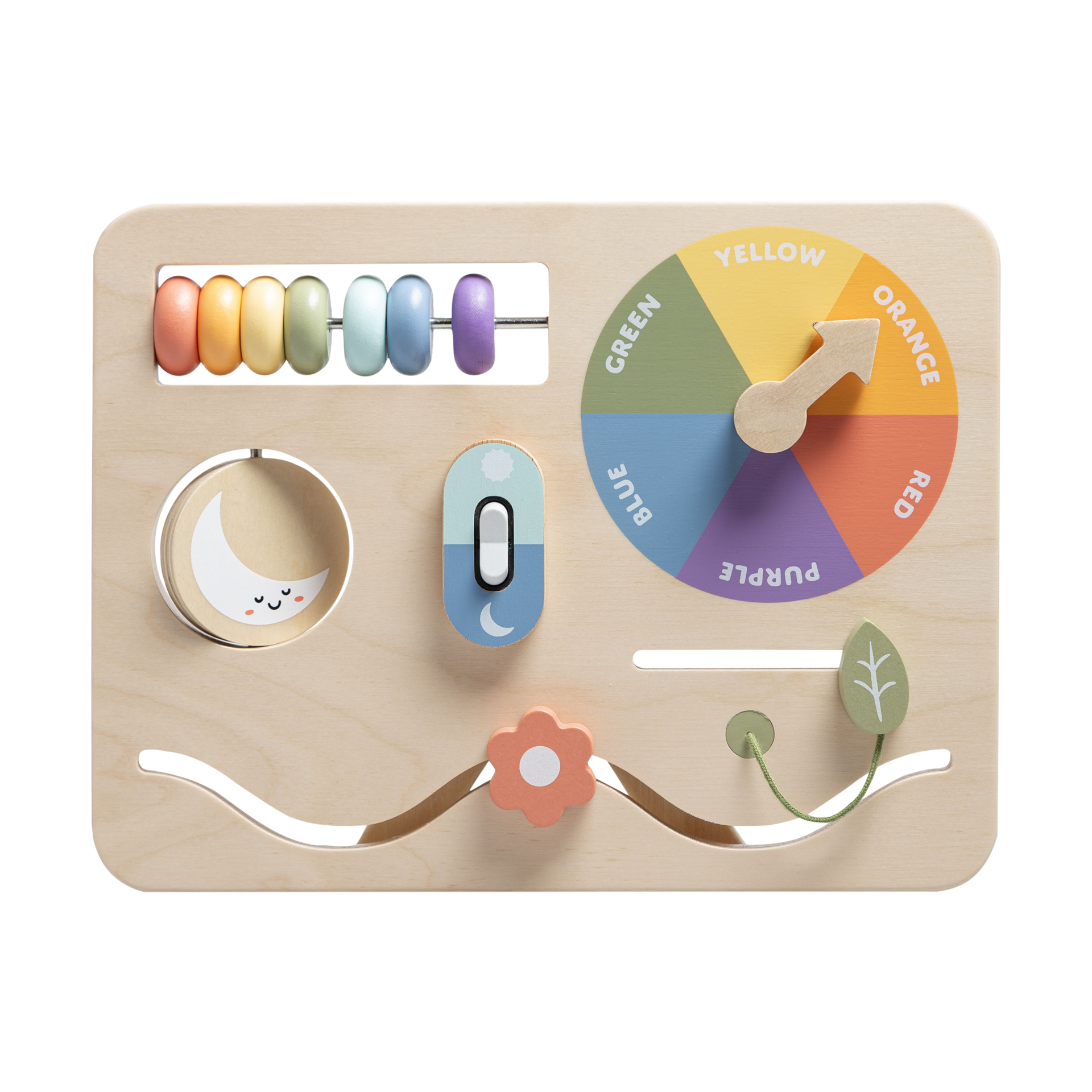 It features sliders, spinners, gears, beads and a colorful wheel to explore, inviting little ones to twist, turn and experiment at their own pace.