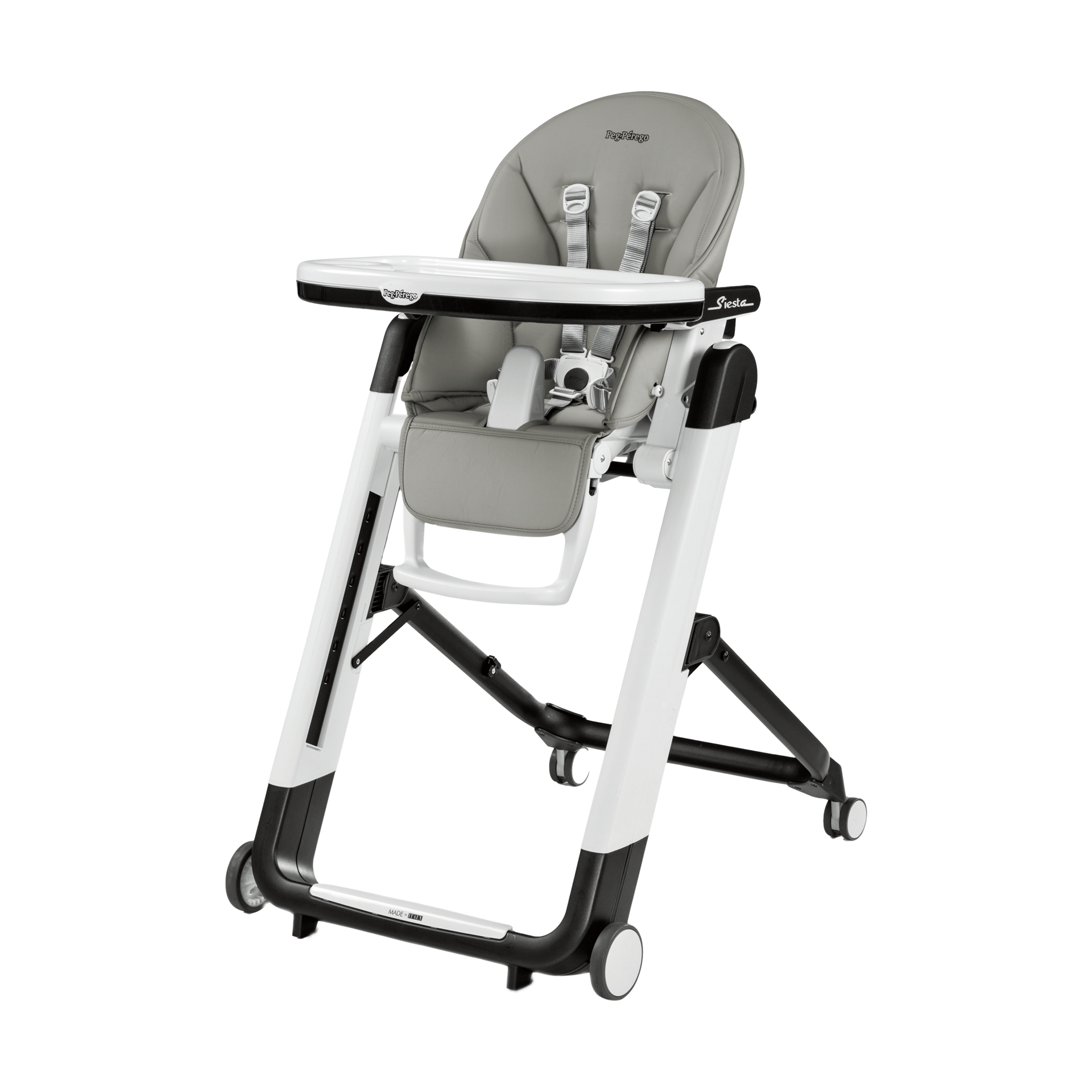 The Siesta boasts five reclining seat positions, including a true lay-flat position, and a three-position adjustable footrest so it works as a recliner as well as a high chair.