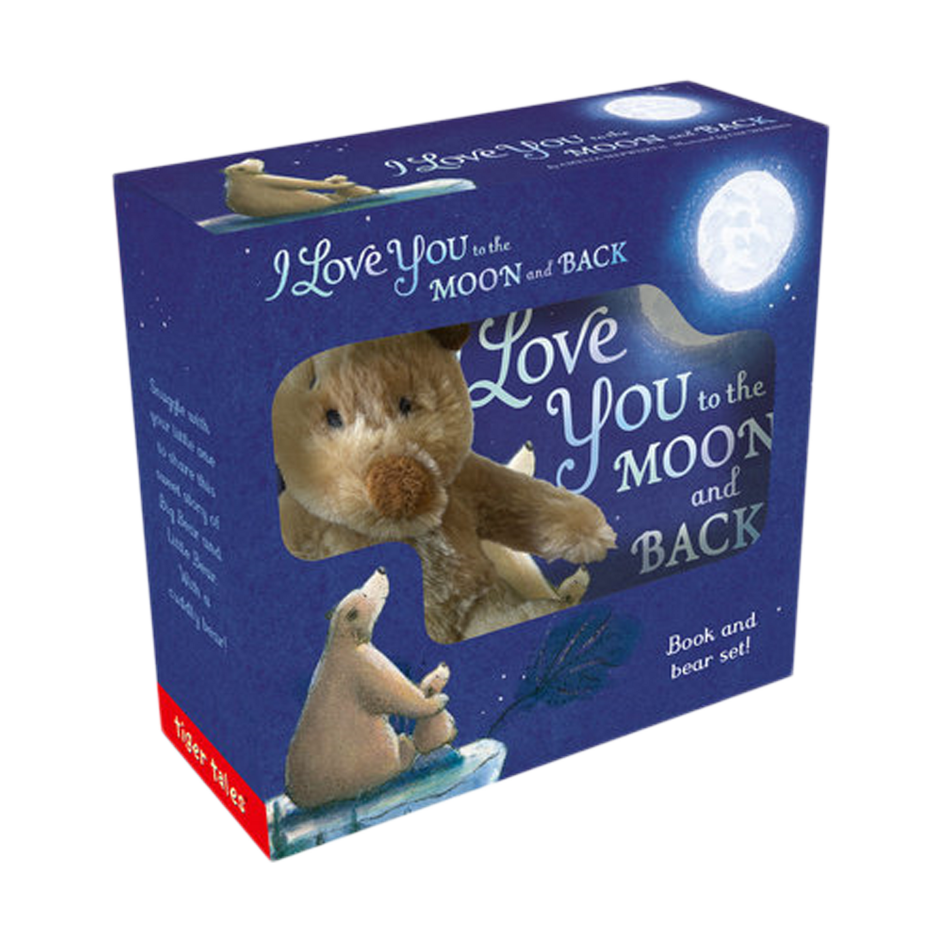 This gift set comes in a mini hardcover format of the beloved book I Love You to the Moon and Back. It also includes an adorable plush bear.