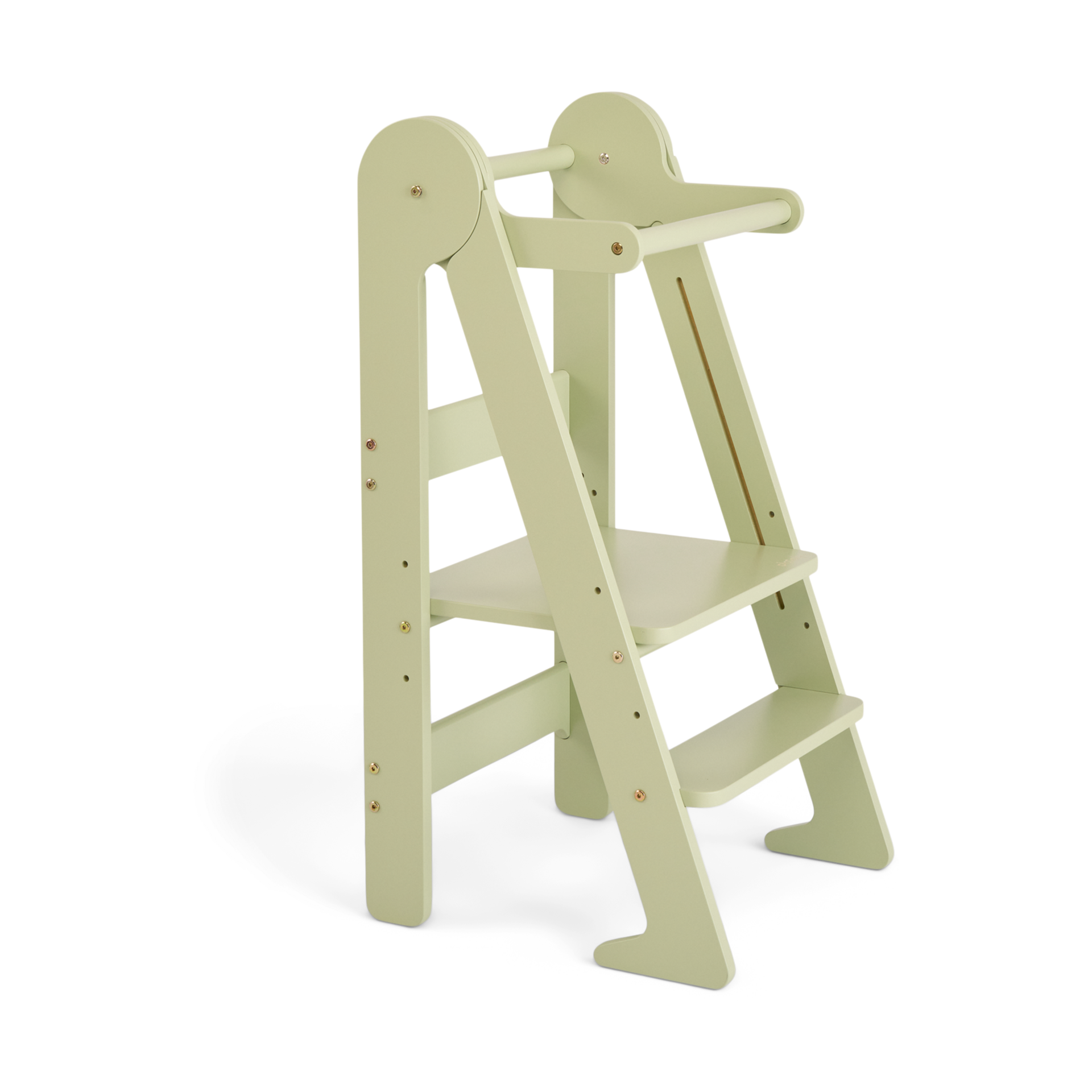 This Foldable Tower offers toddlers a boost so they can safely chef it up and learn how to chop, stir, pour and wash. The adjustable standing platform offers three height options.